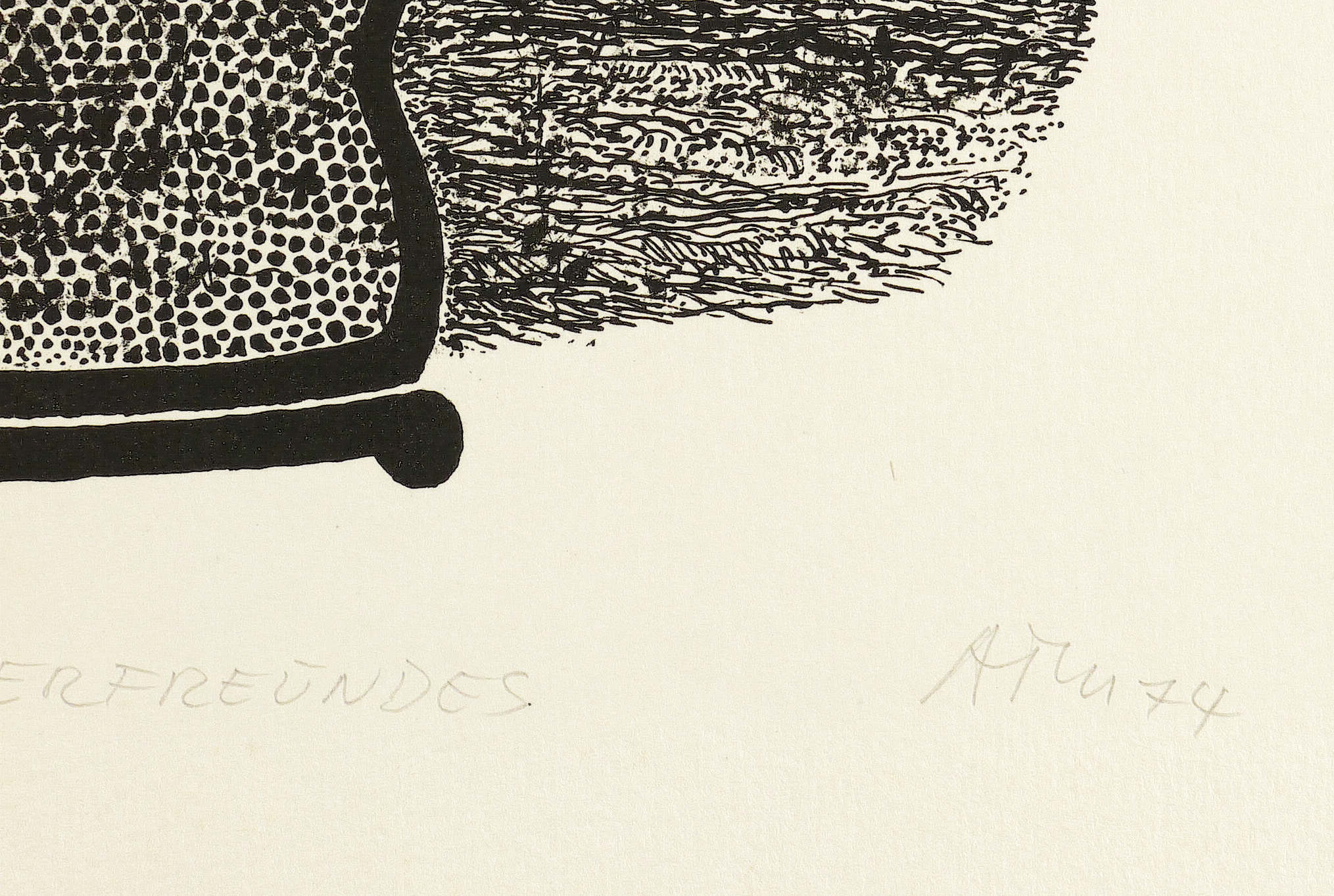Mörstedt G 69. – Aus: Alfred Traugott Mörstedt, Mitgeschöpfe. 8 Lithographien um das Getier (Erfurt: Eigenverlag 1974). – Rechts unten in Bleistift signiert und datiert. Links Auflagenbezeichnung. Mittig Titel. – Sehr gut erhalten.