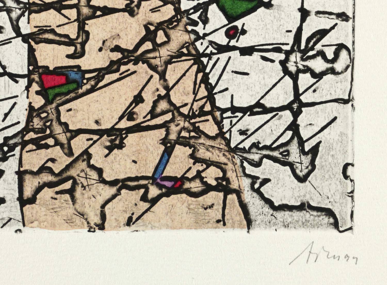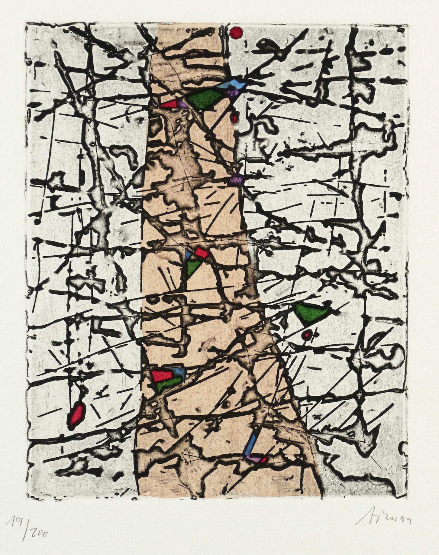 Mörstedt G 252. – Aus: Harald Gerlach & Alfred Traugott Mörstedt, Einschlüsse, Aufbrüche. Blätter zu sechs Monaten deutscher Geschichte (Rudolstadt: Burgart-Presse 1991). – Rechts unten in Bleistift signiert und datiert: ″ATM 91″. Links eigenhändige Auflagenbezeichnung: ″19/200″. – Tadellos. Sehr gut erhalten.
