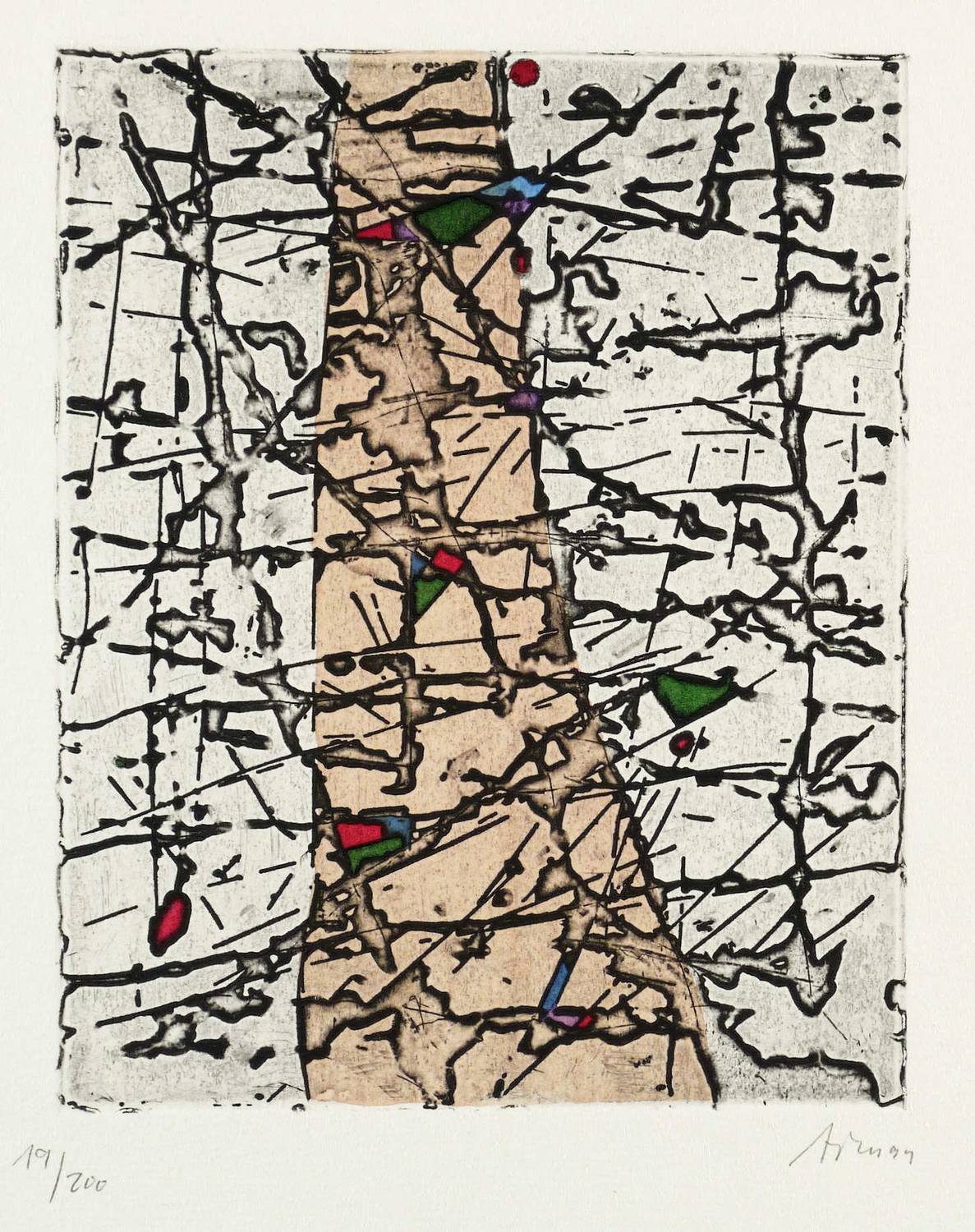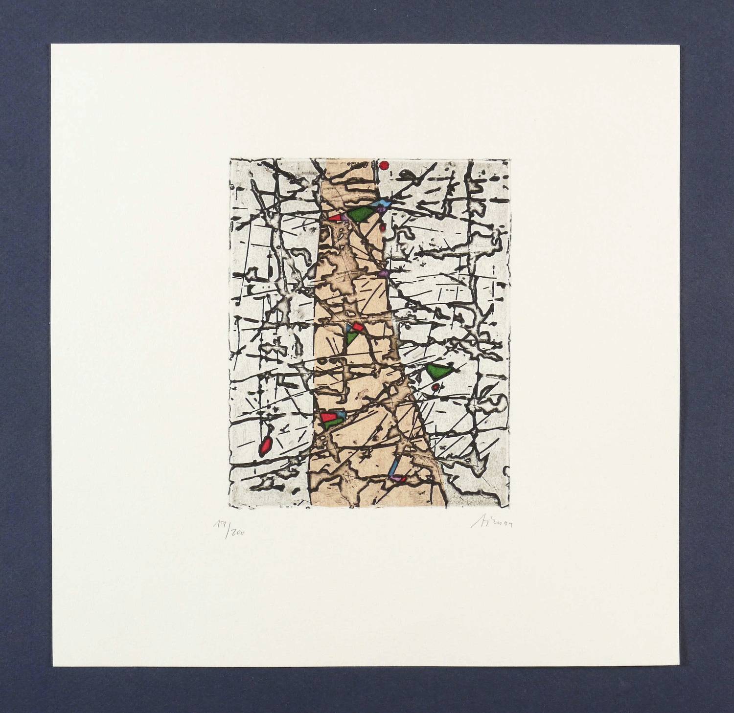1991. Radierung / Reservage, in Schwarz, aquarelliert, auf hellem Velin. – Originale Künstlergrafik, von Alfred Traugott Mörstedt. – Auflage Exemplar Nr. 19/200. – 15,2 x 12,2 cm (Darstellung / Platte), 27 x 27 cm (Blatt).