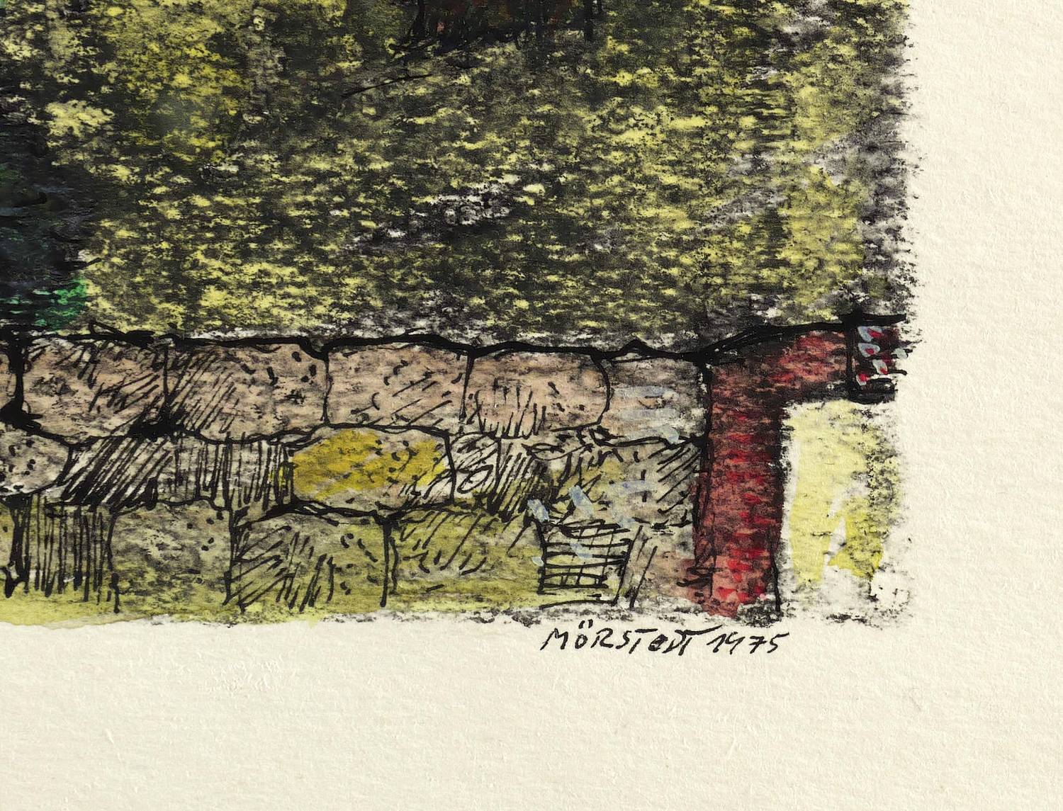 WVZ 720. – Rechts unten in schwarzer Feder signiert und datiert: ″MÖRSTEDT 1975″. Links eigenhändige Werknummer: ″720″. Mittig Titel. – Bezauberndes Blatt aus der Werkgruppe der leicht abstrahierten Unstrut-Bilder. Duftiges, fein nuanciertes Kolorit. - Unikat. – Originalrandiges Blatt ohne jeden Mangel. Im breiten Papierrand altersbedingt minimal gegilbt. Insgesamt sehr guter Zustand.
