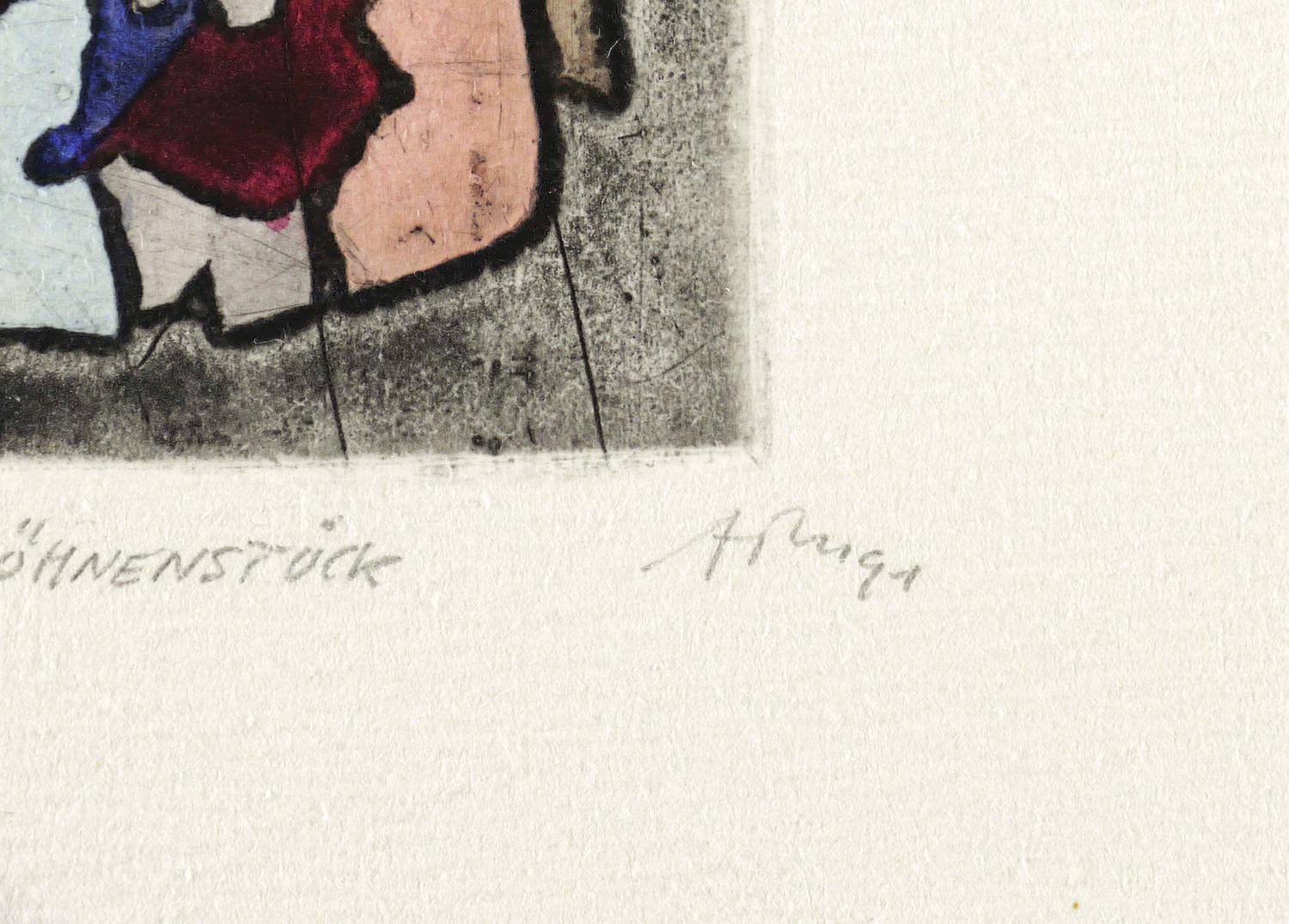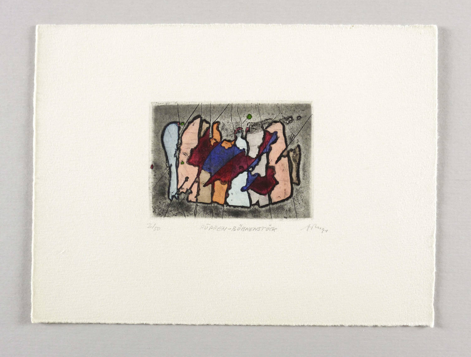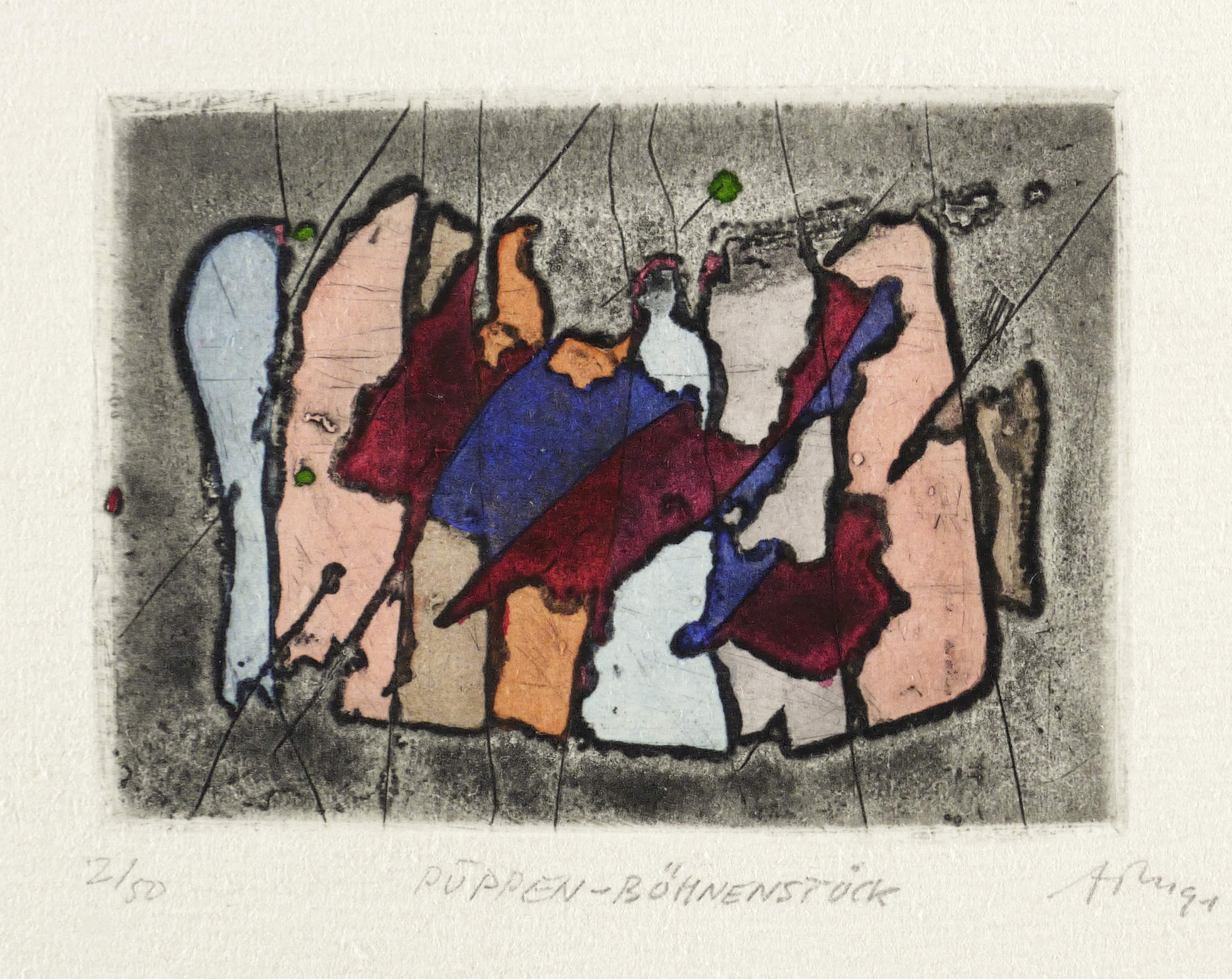 Mörstedt G 256. – Rechts unten in Bleistift signiert und datiert: ″ATM 91″. Links Auflagenbezeichnung: ″7/50″. Mittig Titel: ″PUPPEN-BÜHNENSTÜCK″. – Originalrandiges Exemplar. Tadellos und farbfrisch. Sehr guter Zustand.