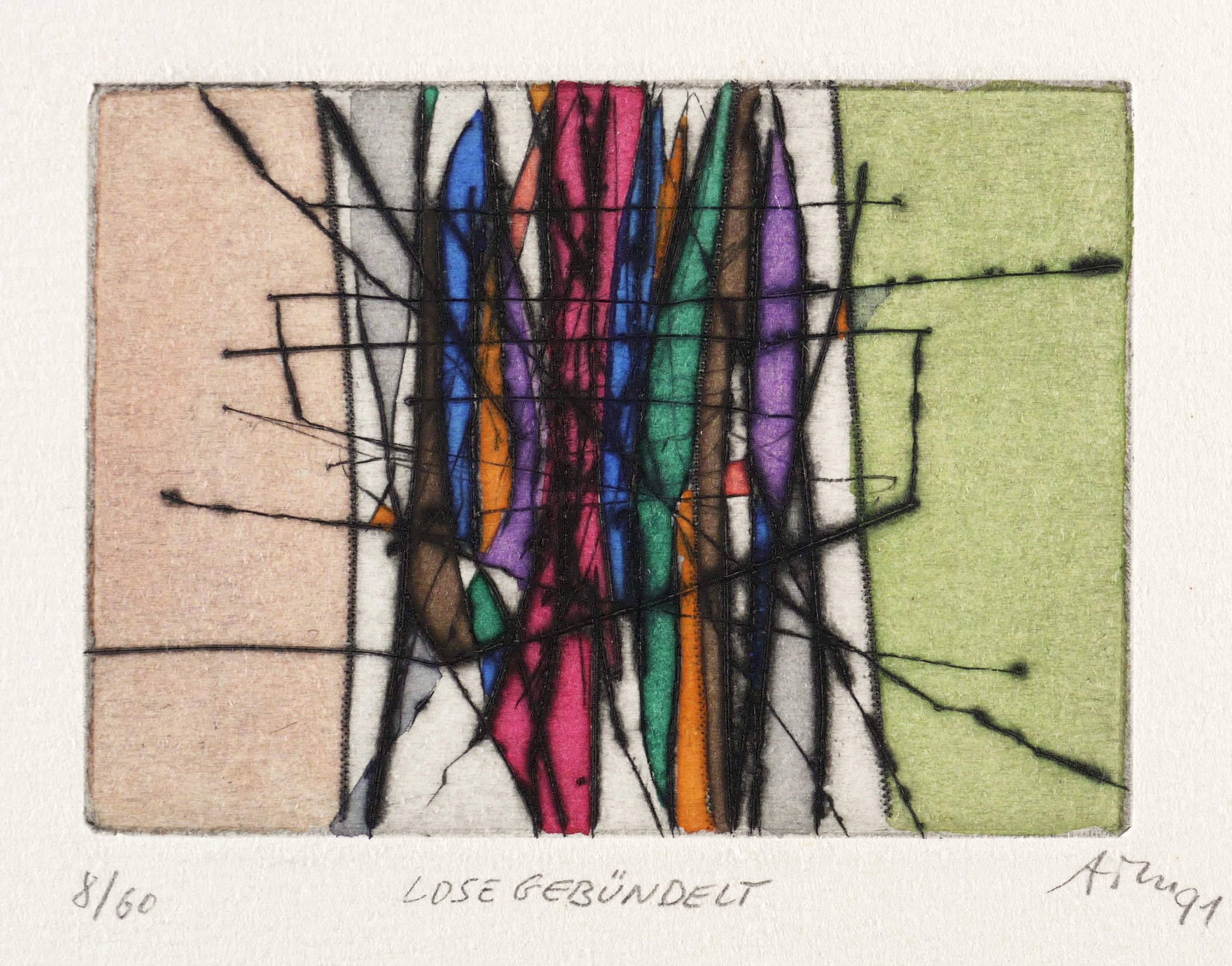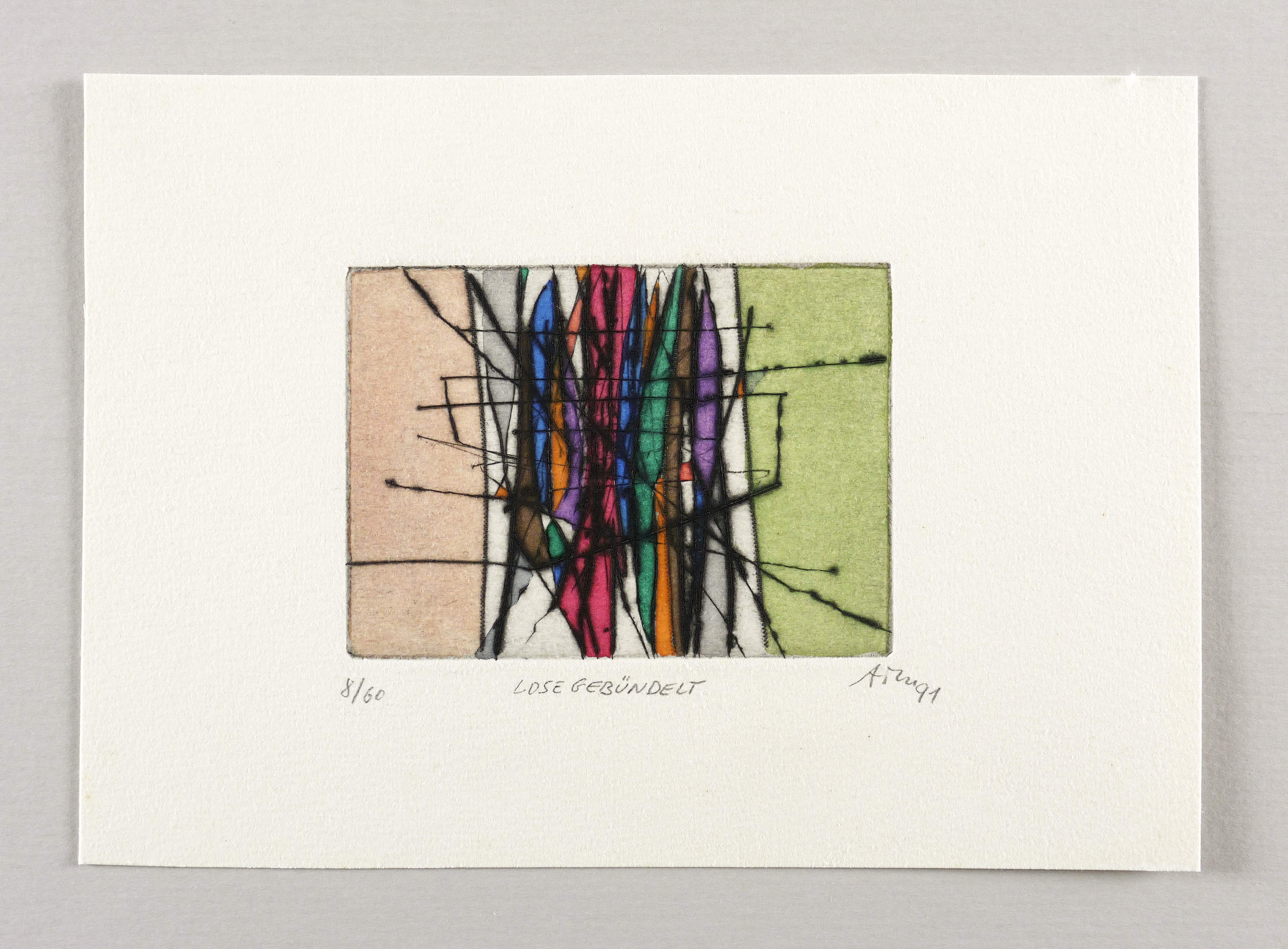 Mörstedt G 250. – Rechts unten in Bleistift signiert und datiert: ″ATM 91″. Links Auflagenbezeichnung: ″8/60″. Mittig Titel: ″LOSE GEBÜNDELT″. – Originalrandiges Exemplar. Tadellos und farbfrisch. Sehr guter Zustand.
