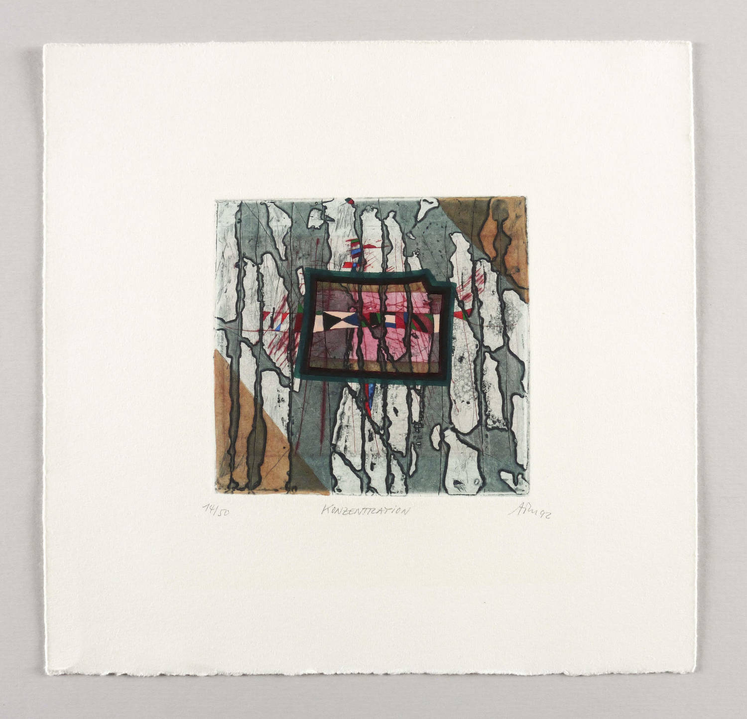 Mörstedt G 267. – Rechts unten in Bleistift signiert und datiert: ″ATM 92″. Links Auflagenbezeichnung: ″14/50″. Mittig Titel: ″KONZENTRATION″. – Originalrandiges Exemplar. Ohne Mängel, farbfrisch. Sehr guter Zustand.