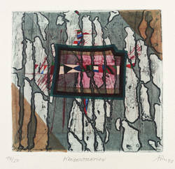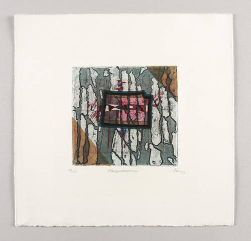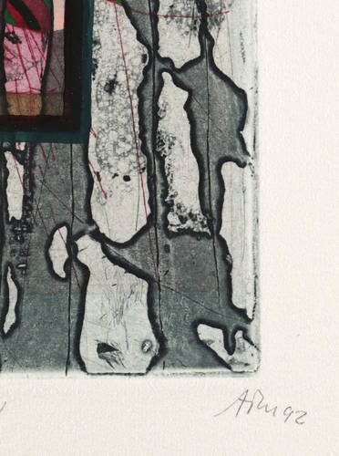 1992. Farbradierung / Aquatinta & Strichätzung, aquarelliert, auf hellchamois Hahnemühle-Bütten. – Von Alfred Traugott Mörstedt. – Auflage Exemplar Nr. 14/50. – 11,2 x 11,8 cm (Darstellung / Platte), 24 x 25 cm (Blatt).
