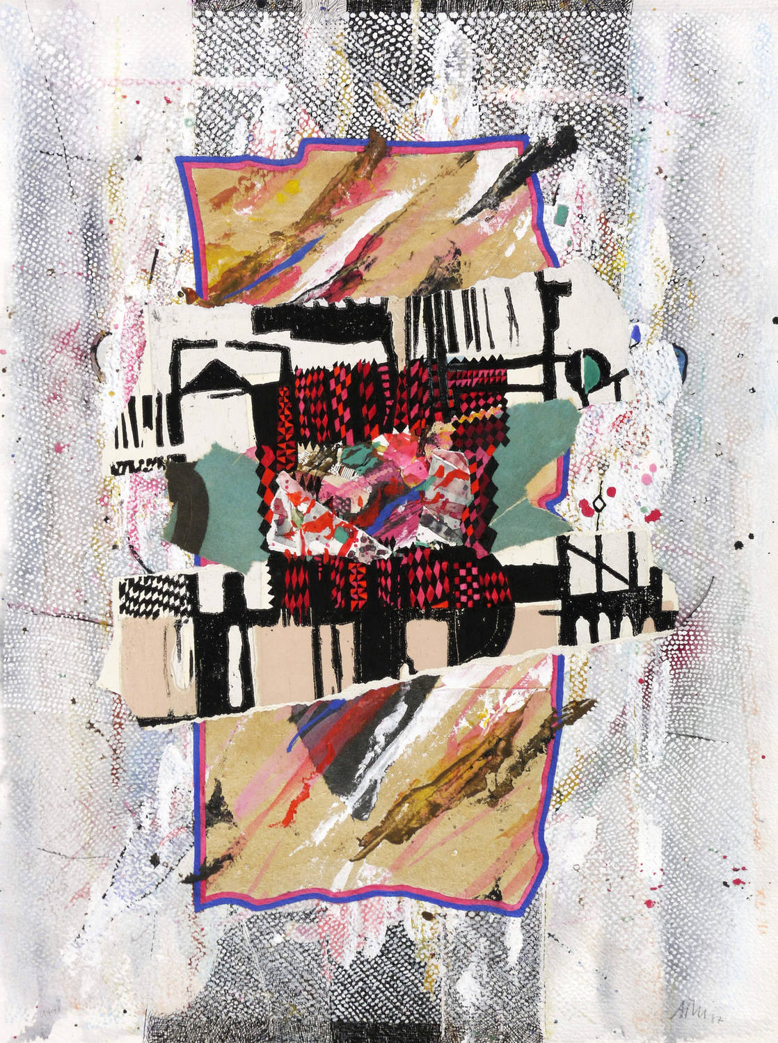 1994. Mischtechnik / Gouache, Papiercollage & Tusche, auf festem hellchamois Aquarellkarton. – Von Alfred Traugott Mörstedt. – 36,1 x 47,8 cm (Darstellung / Blatt).
