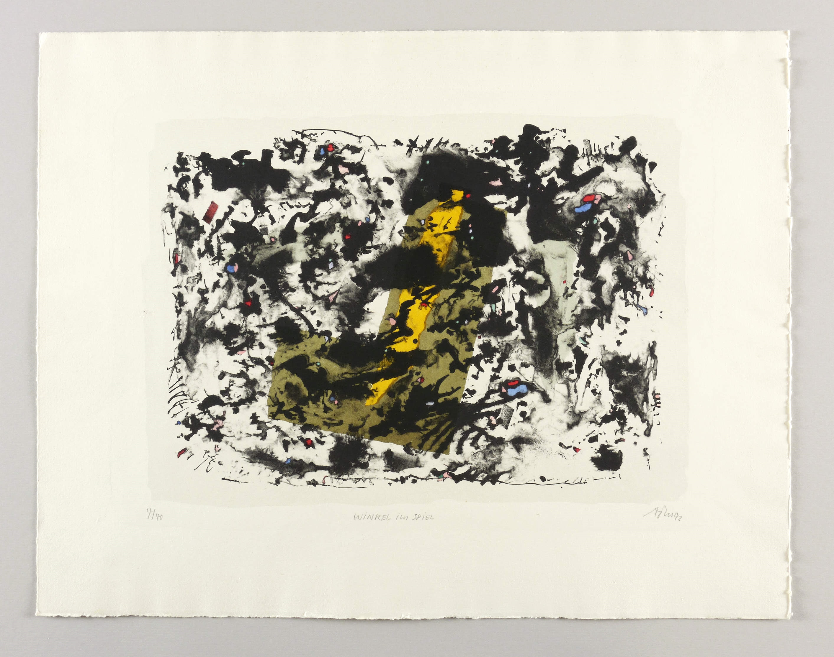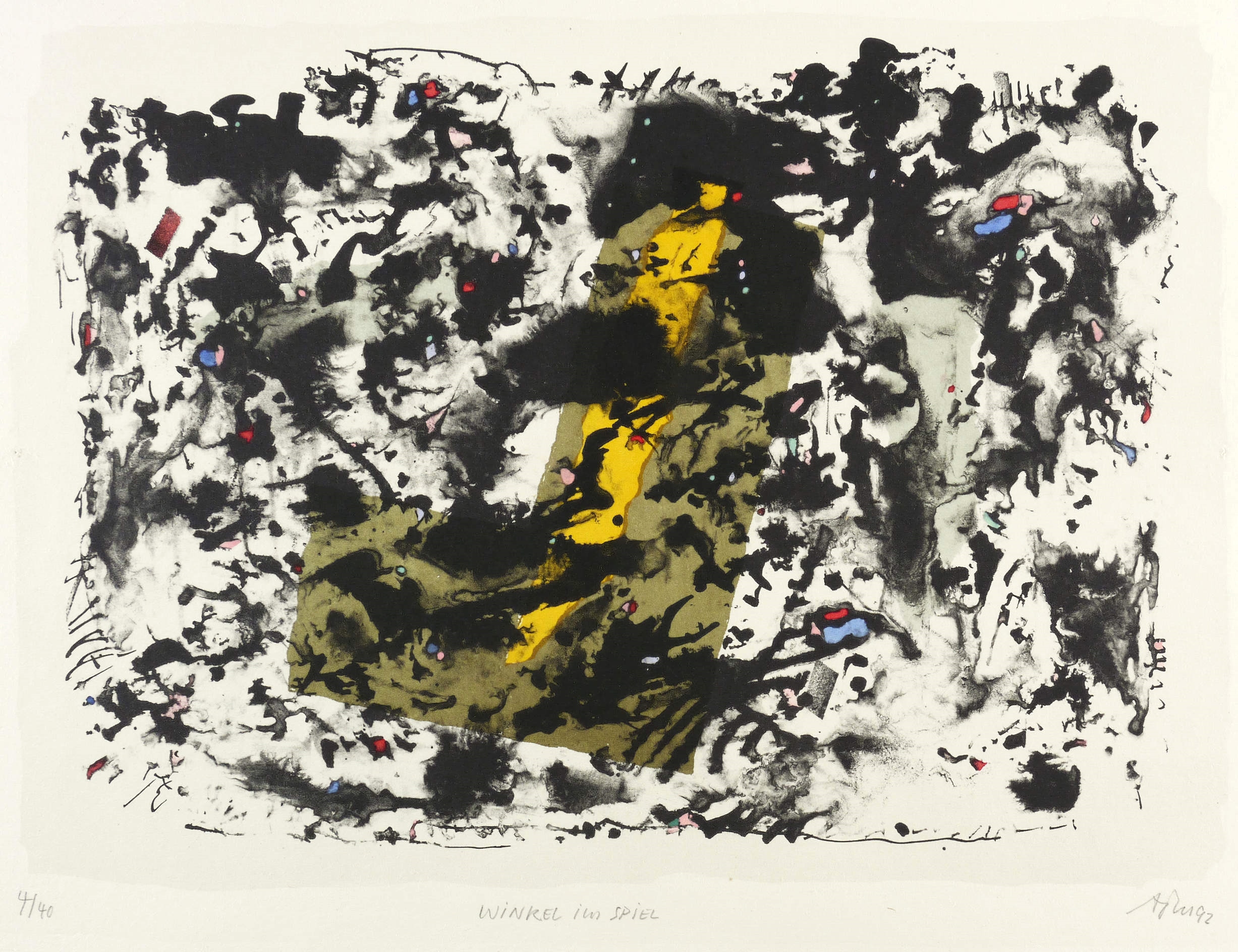 Mörstedt G 275. – Rechts unten in Bleistift signiert und datiert: ″ATM 92″. Links Auflagenbezeichnung: ″4/40″ Mittig Titel: ″WINKEL IM SPIEL″. – Vom Künstler in Aquarellfarben handkoloriert. – Originalrandig, farbfrisch und ohne Mängel. Sehr guter Zustand.