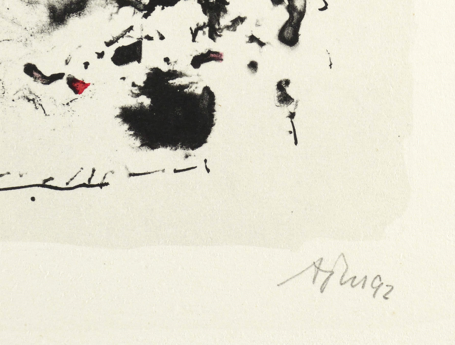 1992. Farblithografie / Feder- & Pinsellithografie, aquarelliert, auf schwerem gelbem Velin. – Von Alfred Traugott Mörstedt. – Auflage Exemplar Nr. 4/40. – 26,2 x 36,0 cm (Darstellung), 40 x 50 cm (Blatt).