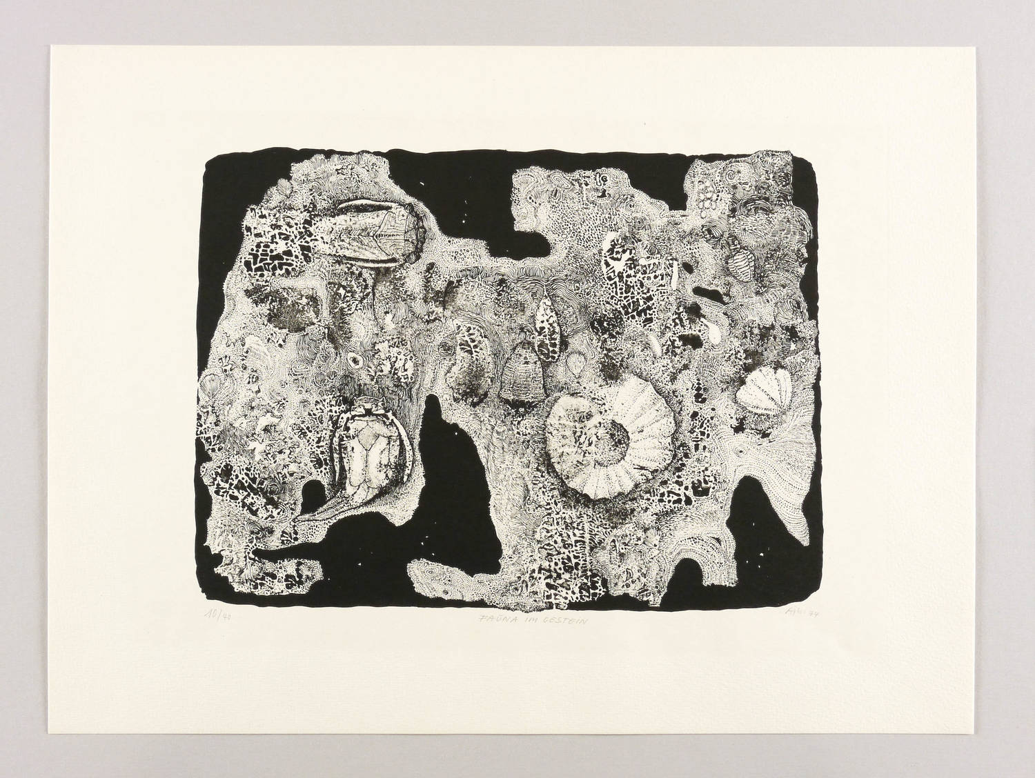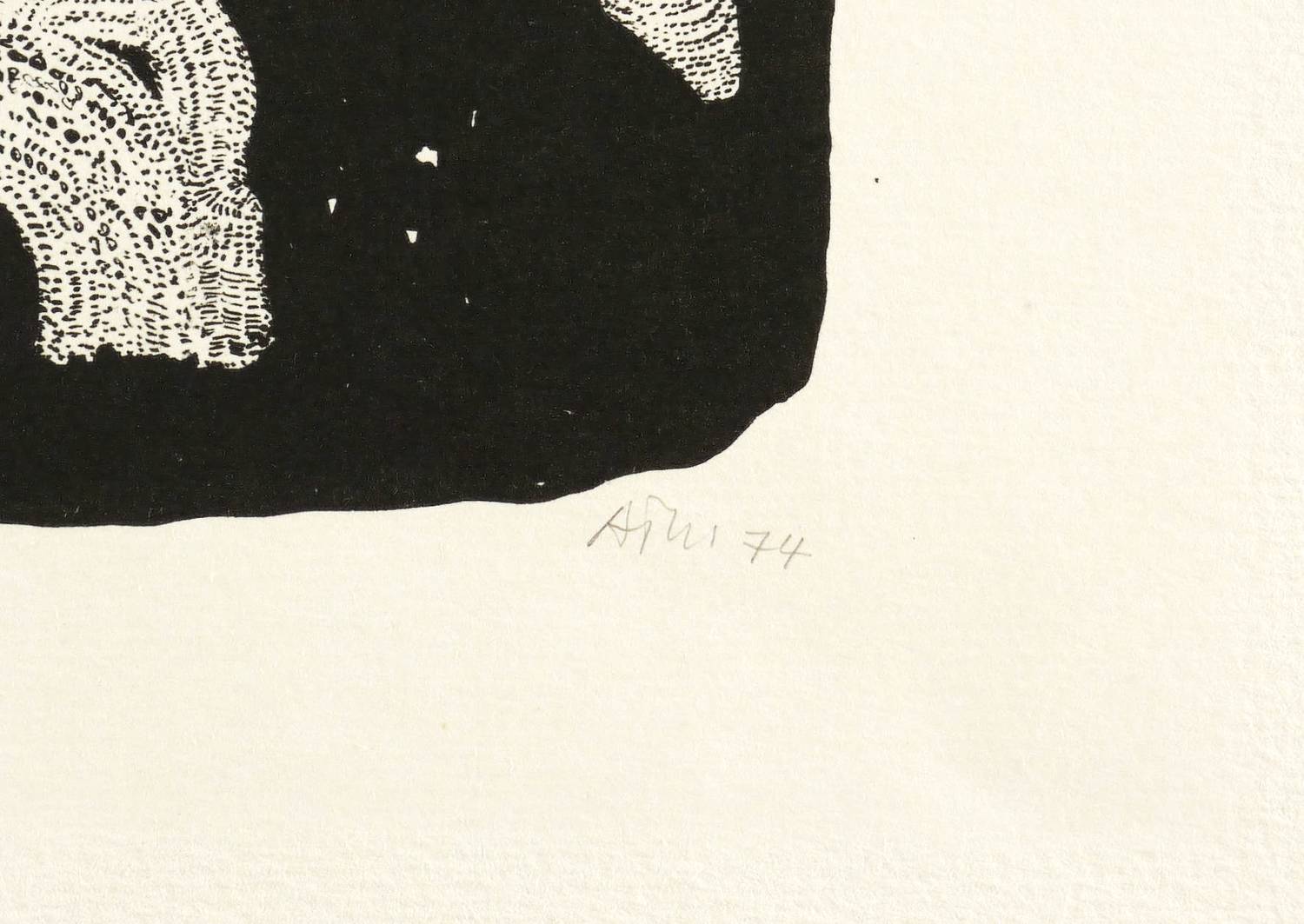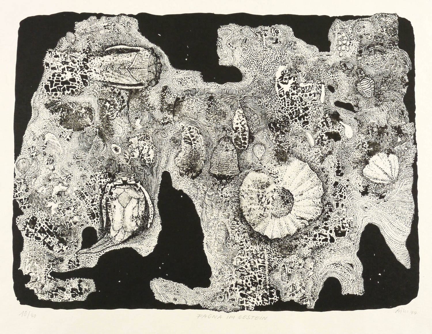 1974. Lithografie / Feder- & Pinsellithografie, partiell geschabt, in Schwarz, auf Weißenborn-Bütten. – Originale Künstlergrafik, von Alfred Traugott Mörstedt. – Auflage Exemplar Nr. 10/40. – 23,3 x 32,2 cm (Darstellung), 36 x 48 cm (Blatt).