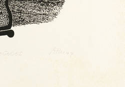 Mörstedt G 69. – Aus: Alfred Traugott Mörstedt, Mitgeschöpfe. 8 Lithographien um das Getier (Erfurt: Eigenverlag 1974). – Rechts unten in Bleistift signiert und datiert. Links Auflagenbezeichnung. Mittig Titel. – Sehr gut erhalten.