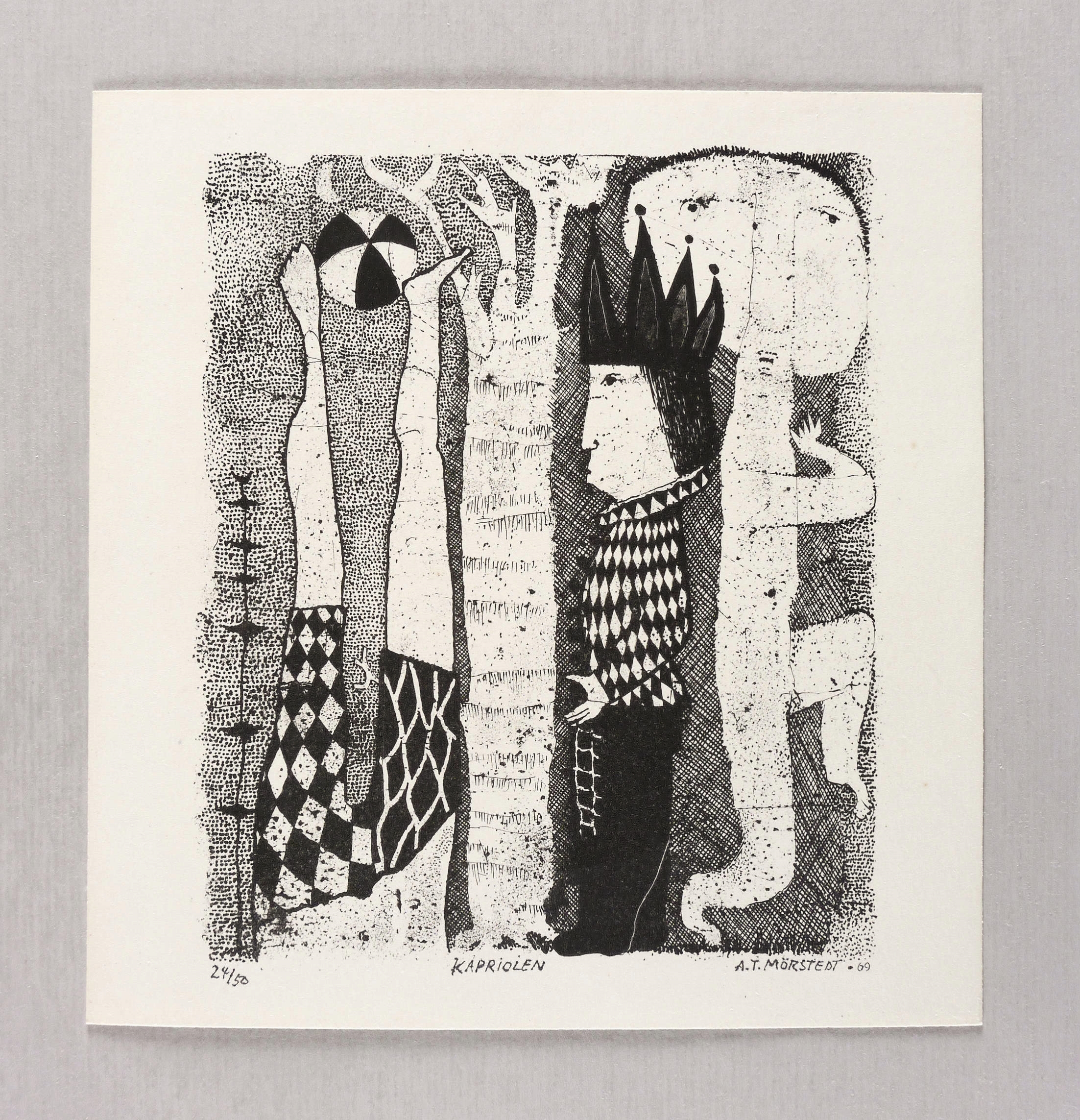 Mörstedt G 43. – Rechts unten in schwarzer Tusche signiert und datiert: ″A.T. MÖRSTEDT 69″. Dazu links Auflagenbezeichnung: ″24/50″. Mittig Titel: ″KAPRIOLEN″. – Tadellos erhalten. Sehr guter Zustand.