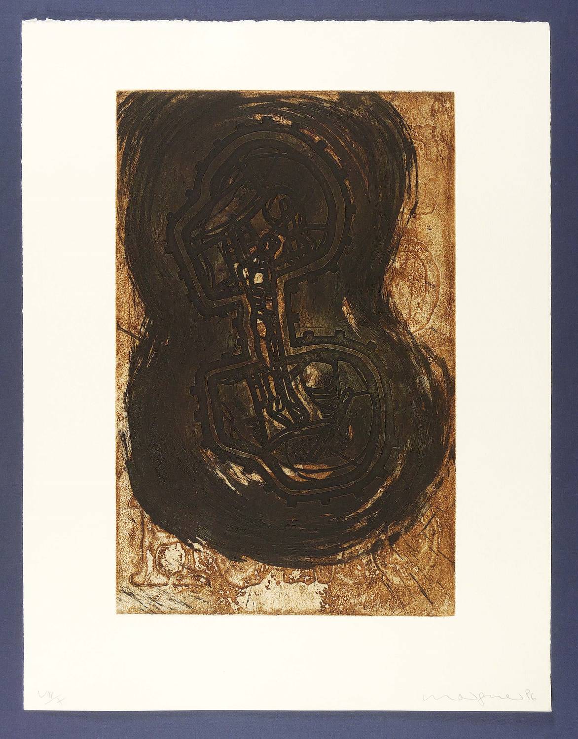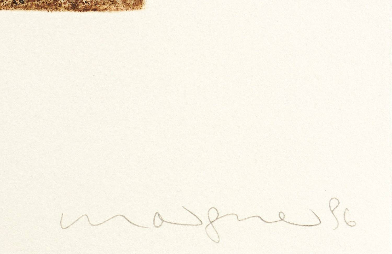 1996. Farbradierung / Aquatinta, in Braun & Schwarz, auf Hahnemühle-Büttenpapier. – Originale Künstlergrafik, von Michael Morgner. – Auflage Exemplar Nr. VIII/X. – 49,7 x 32,1 cm (Darstellung / Platte), 65 x 50 cm (Blatt).