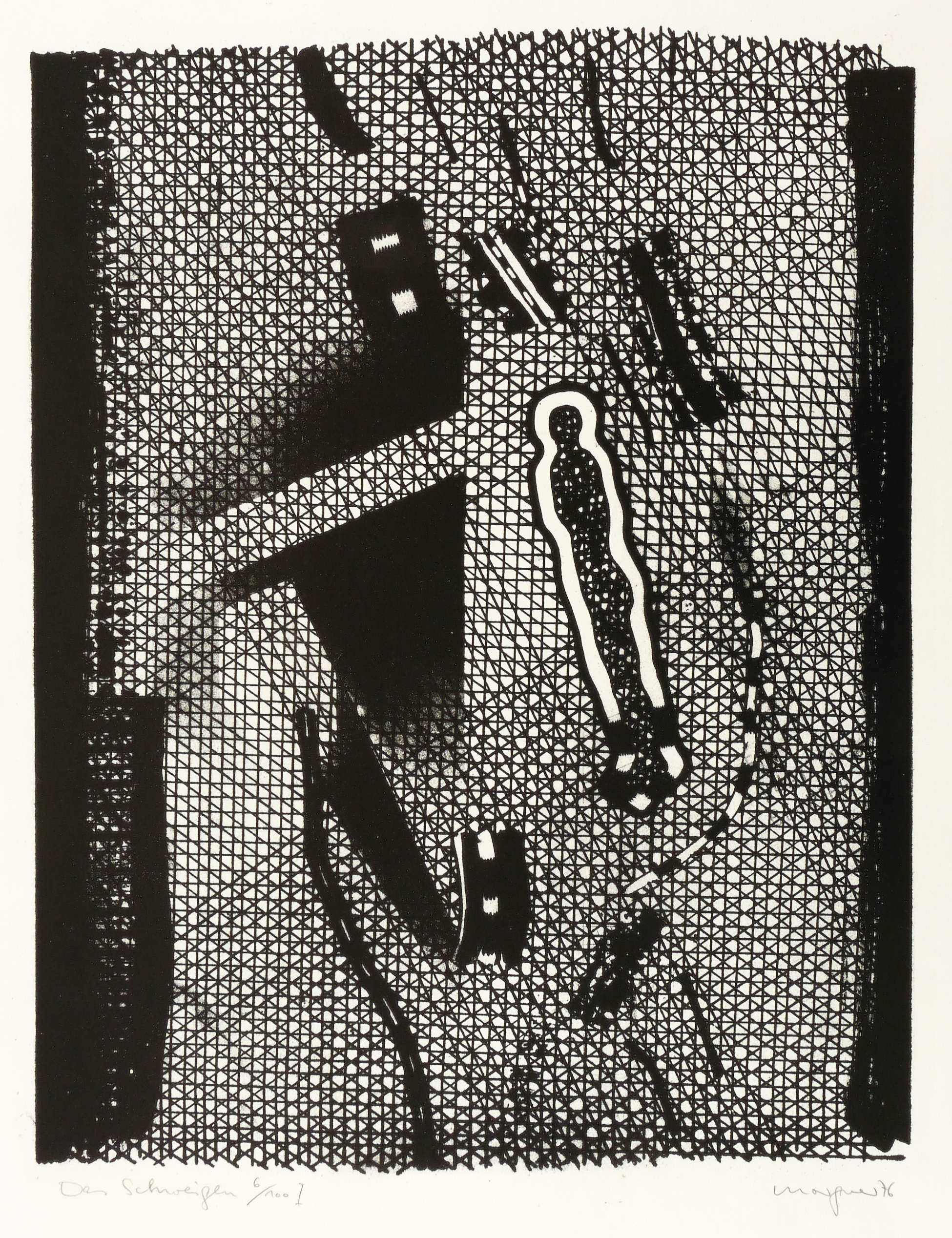 1976. Offsetlithografie / Feder-, Pinsel- & Kreidelithografie, auf hellchamois Karton. – Von Michael Morgner. – Auflage Exemplar Nr. 6/100. – 43,6 x 35,2 cm (Darstellung / Druckbild), 60 x 42 cm (Blatt).