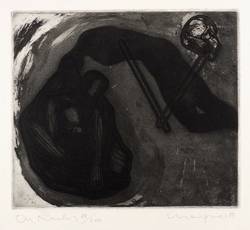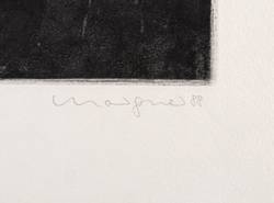 1988. Radierung / Strichätzung & Aquatinta, Materialdruck im Tiefdruck, in Schwarz, auf gehämmertem Maschinenbütten. – Originale Künstlergrafik, von Michael Morgner. – Auflage Exemplar Nr. 88/200. – 24,0 x 27,5 cm (Darstellung / Platte), 37 x 36 cm (Blatt).