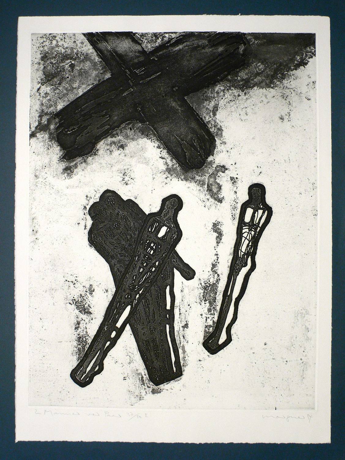 Werner-Juppe 18/83 c (von c). – Rechts unten in Bleistift signiert und datiert: ″morgner 94″. Links betitelt und mit eigenhändiger Auflagenbezeichnung versehen: ″2 Männer vor Paar / 37/50 II″. Wasserzeichen der Hahnemühle. – Exemplar aus der Nachauflage von 1994. Die erste Auflage von 1983 umfasste 25 Exemplare. – Tadellos. Sehr guter Zustand.