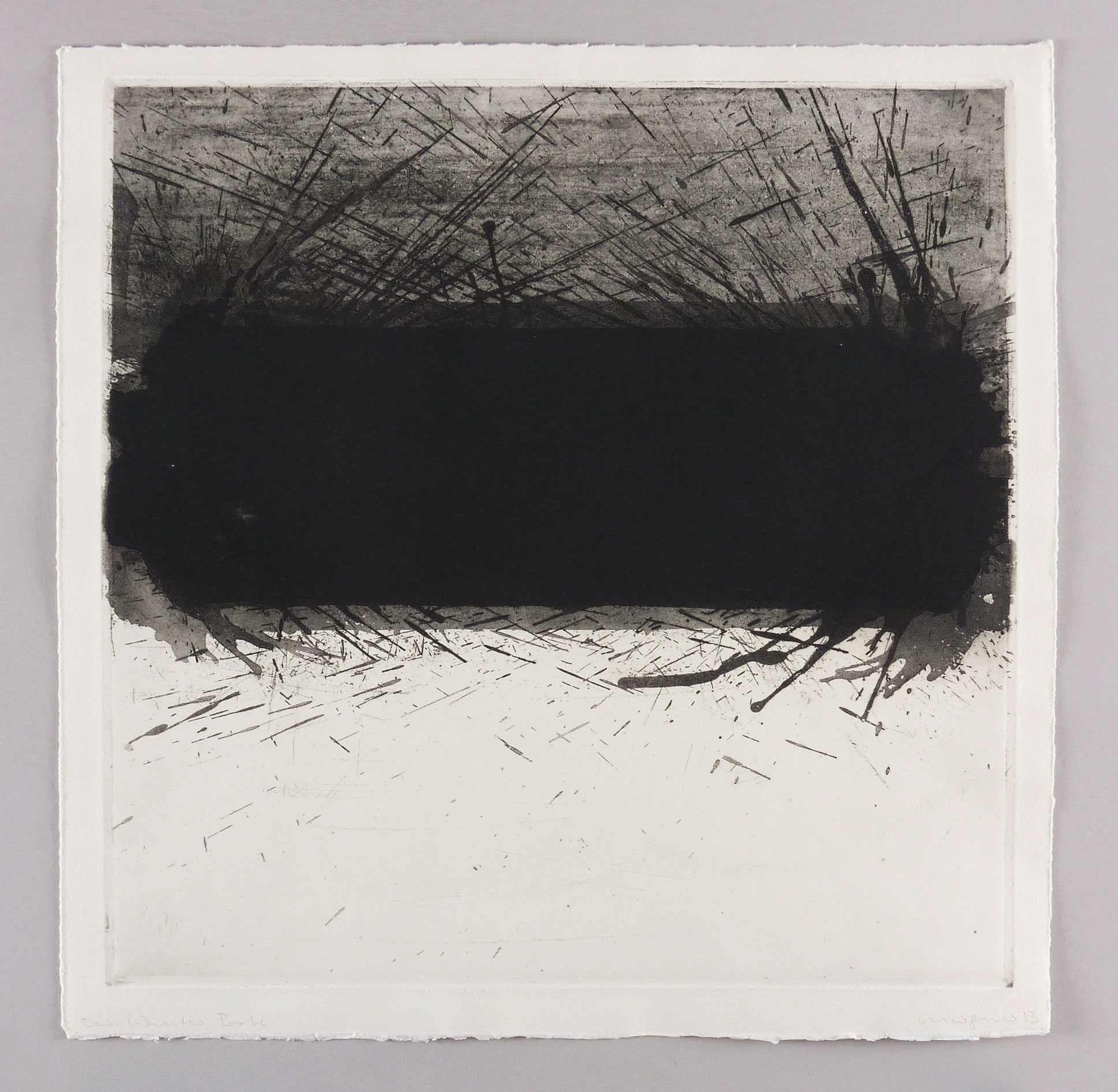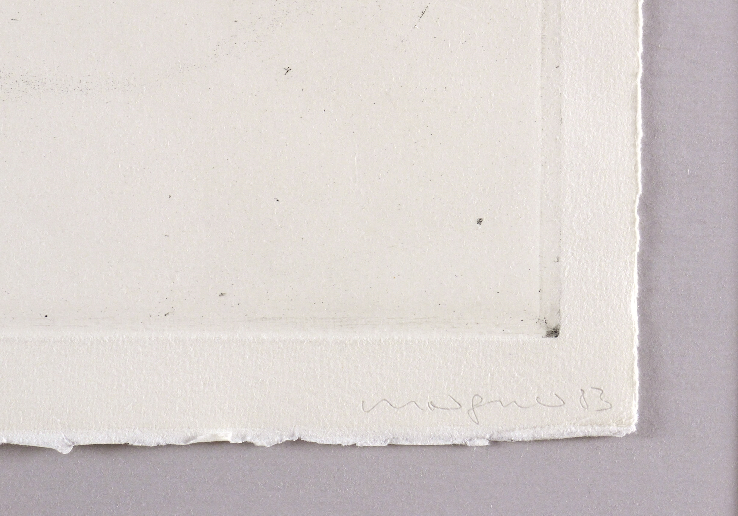 1983. Radierung / Aquatinta & Reservage, in Schwarz, auf schwerem weißem Hahnemühle. – Originale Künstlergrafik, von Michael Morgner. – Probedruck. – 49,3 x 49,5 cm (Darstellung / Platte), 54 x 55 cm (Blatt).