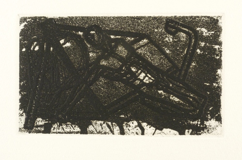 1996. Radierung / Strichätzung & Aquatinta, in Schwarz, auf schwerem hellchamois Hahnemühle. – Originale Künstlergrafik, von Michael Morgner. – Künstlerexemplar (e.a.). – 9,8 x 16,4 cm (Darstellung / Druckbild), 19 x 25 cm (Blatt).