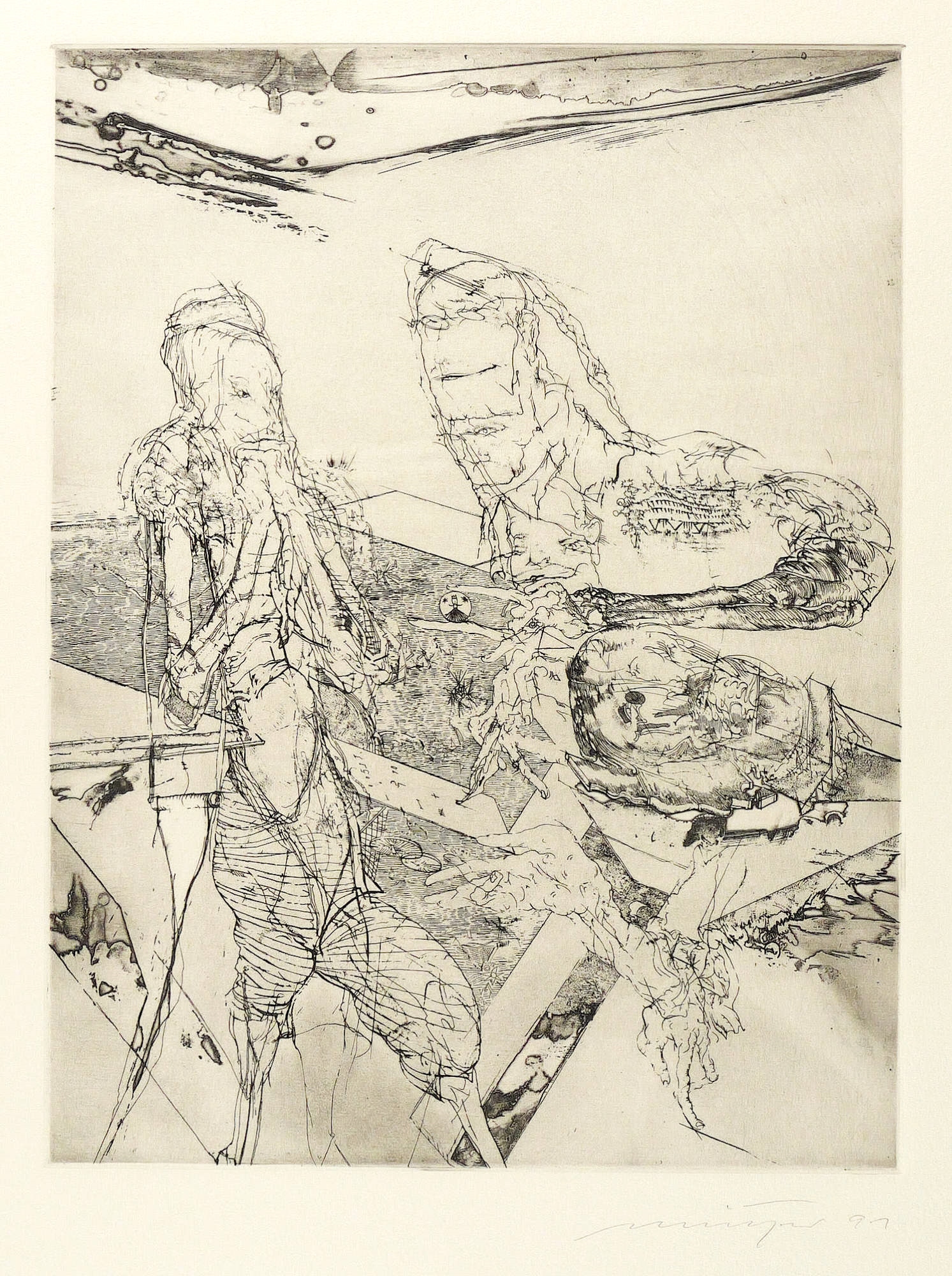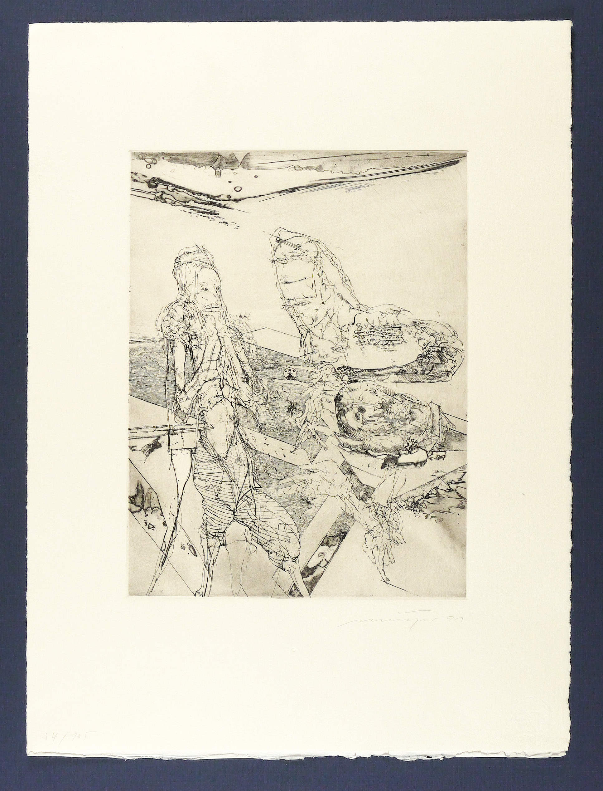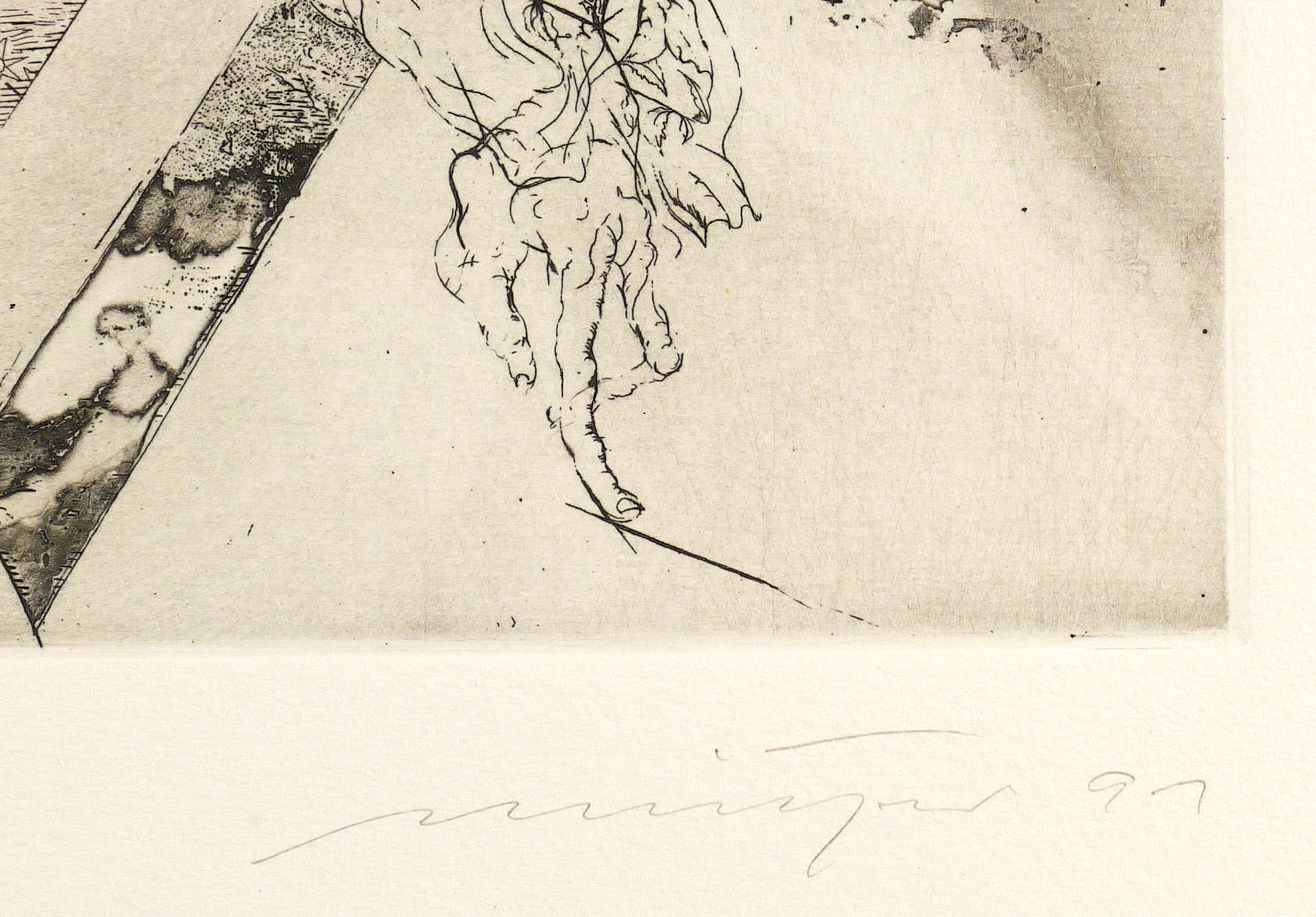 1991. Radierung / Strichätzung, mit Plattenton, auf schwerem Hahnemühle-Bütten. – Originale Künstlergrafik, von Rolf Münzner. – Auflage Exemplar Nr. 54/105. – 32,7 x 24,6 cm (Darstellung / Platte), 53,5 x 39,5 cm (Blatt).