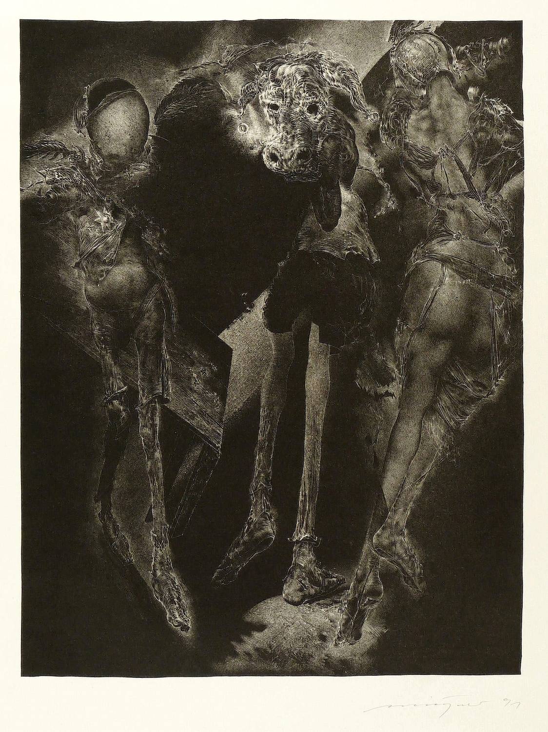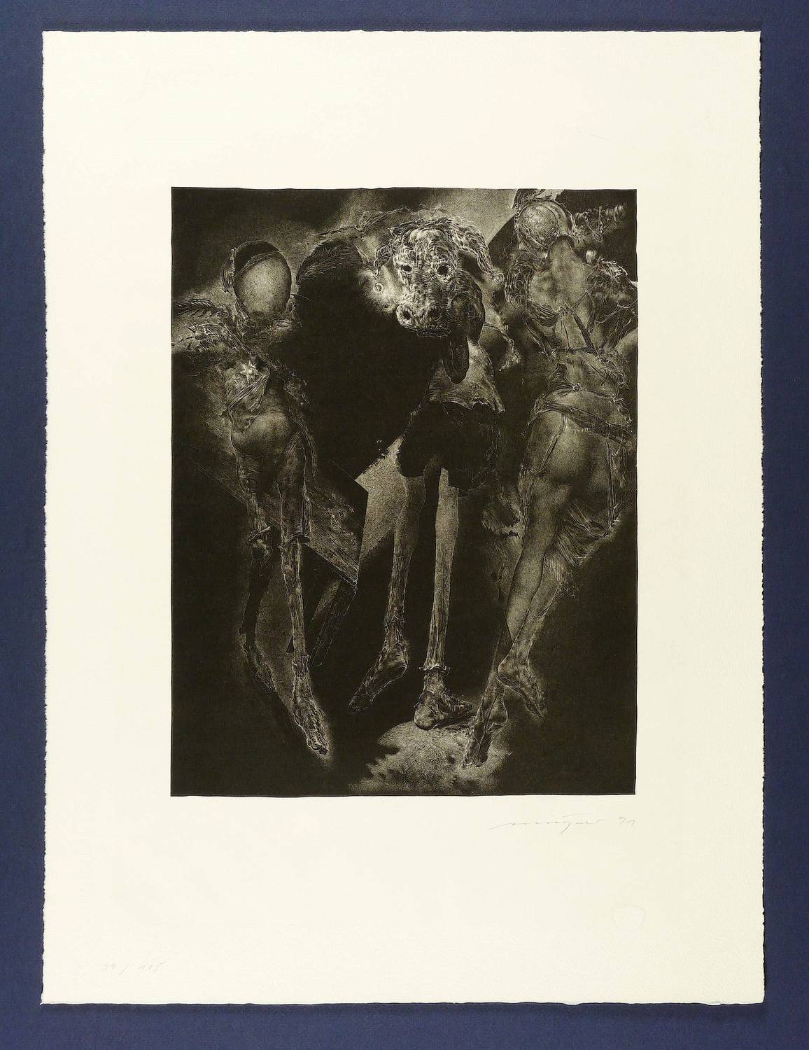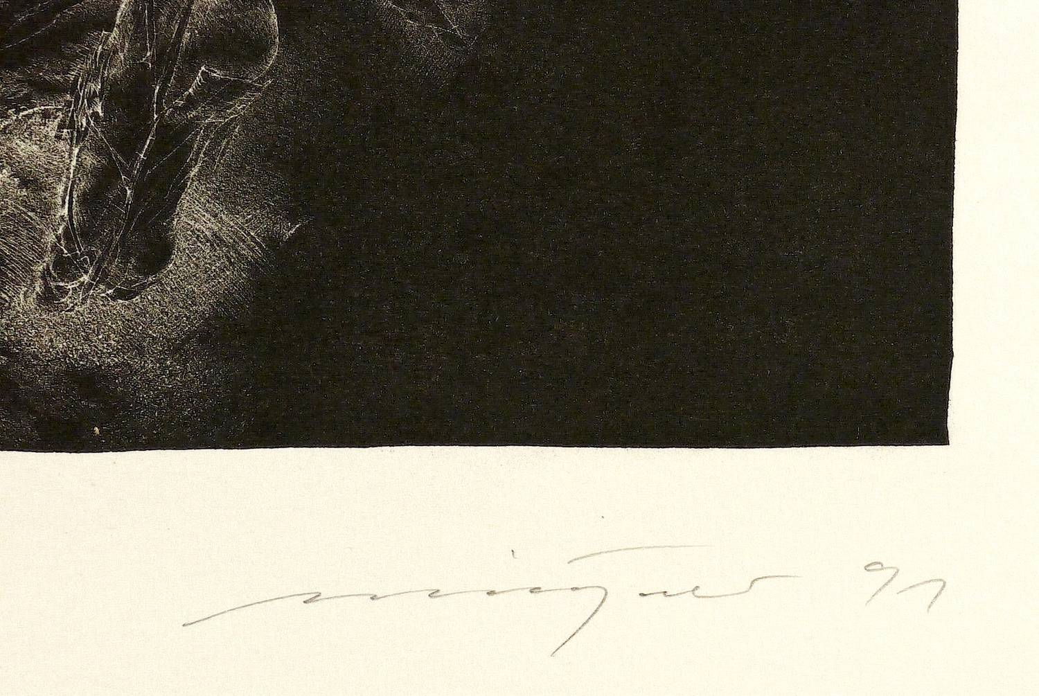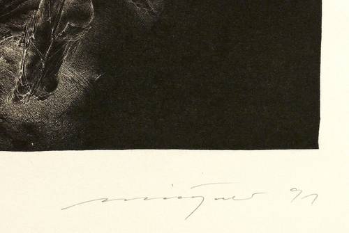 1991. Lithografie / Schablithografie, auf Hahnemühle-Bütten. – Von Rolf Münzner. – Auflage Exemplar Nr. 54/150. – 33,4 x 25,6 cm (Darstellung / Druckbild), 53,5 x 39,5 cm (Blatt).