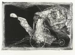 Rolf Münzner (1942 Geringswolde, lebt und arbeitet in Geithain bei Leipzig). Deutscher Zeichner und Grafiker. 1956-60 Lehre und Arbeit als Maschinenschlosser in Leisnig. 1960-62 besucht er Abendkurse an der Hochschule für Grafik und Buchkunst in Leipzig (HGB). 1962-67 Studium der Grafik und Illustration an der HGB u.a. bei Werner Tübke. 1969-72 Aspirantur. 1973-92 Lehrauftrag für Aktzeichnen und Illustration an der HGB. Seit 1990 Leiter der Werkstatt für Lithografie. Seit 1992 Professor. Seine skurrilen Figuren und bewegungsreichen Phantasiewelten werden in der seltenen Technik der Asphaltschabmanier im Steindruck umgesetzt. Detailreichtum und gesteigerte Virtuosität charakterisieren sein Werk ebenso wie eine Vorliebe für literarische Themen, denen er jeweils kongeniale Schöpfungen an die Seite stellt.
