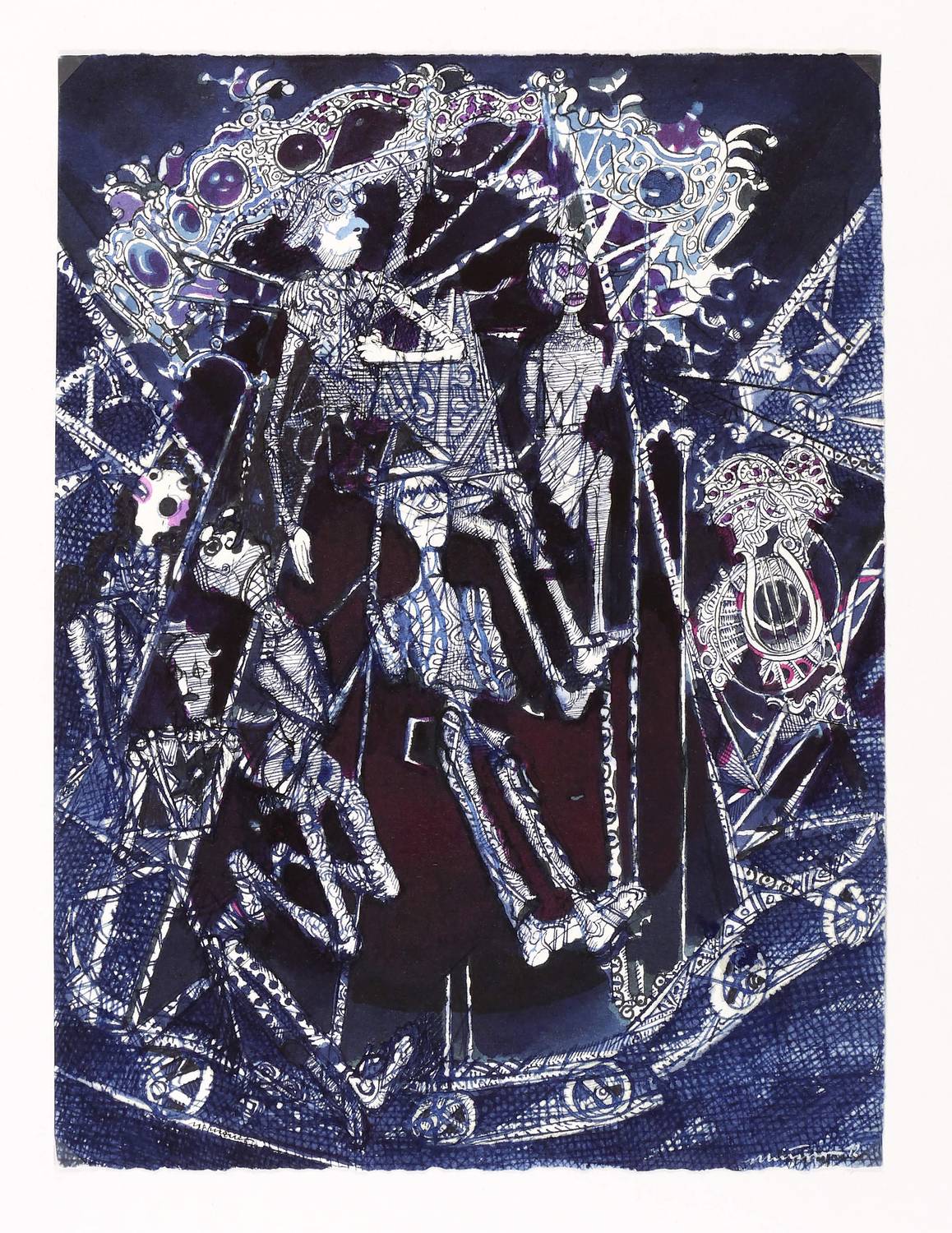 2012. Zeichnung / Feder- & Pinselzeichnung, in schwarzer, blauer & roter Tusche, auf Bütten. – Originale Künstlergrafik, von Rolf Münzner. – Unikat. – 32,8 x 24,4 cm (Darstellung / Blatt), 70 x 50 cm (Trägerblatt).