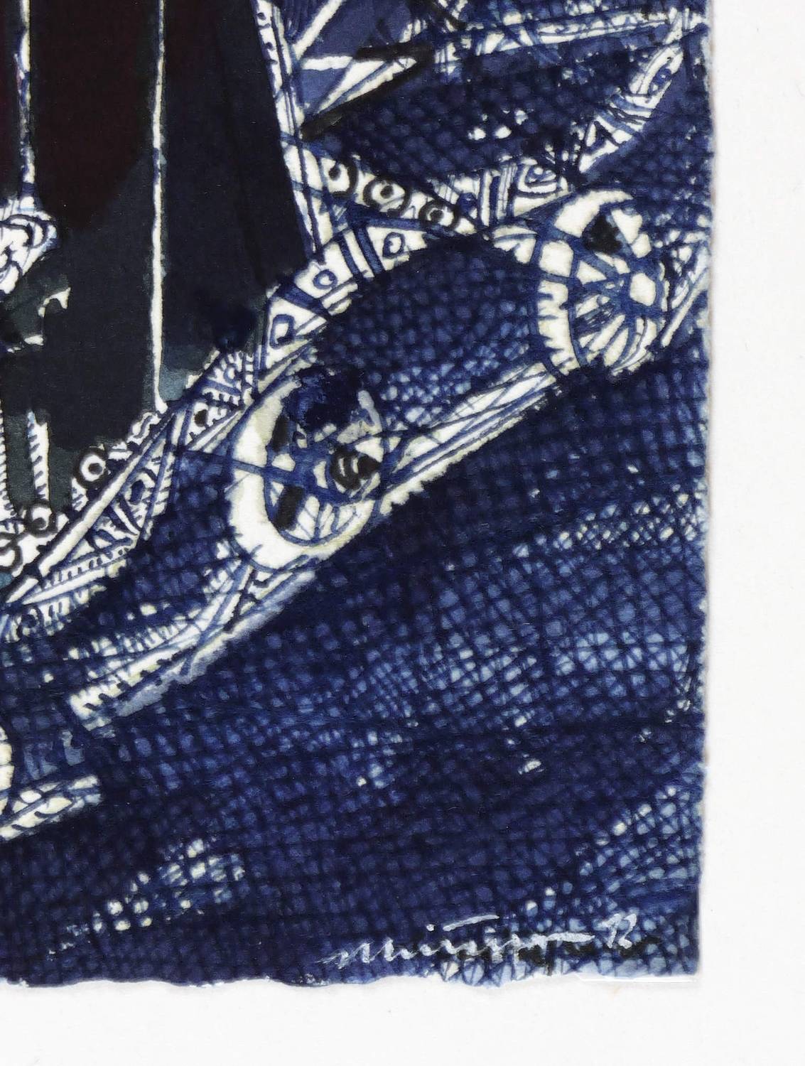 Verso in Feder signiert, datiert und betitelt. Dazu auf dem Trägerblatt unten in Bleistift signiert, datiert und betitelt. – Vom Künstler original auf Trägerblatt gesetzt. Sehr guter Zustand.