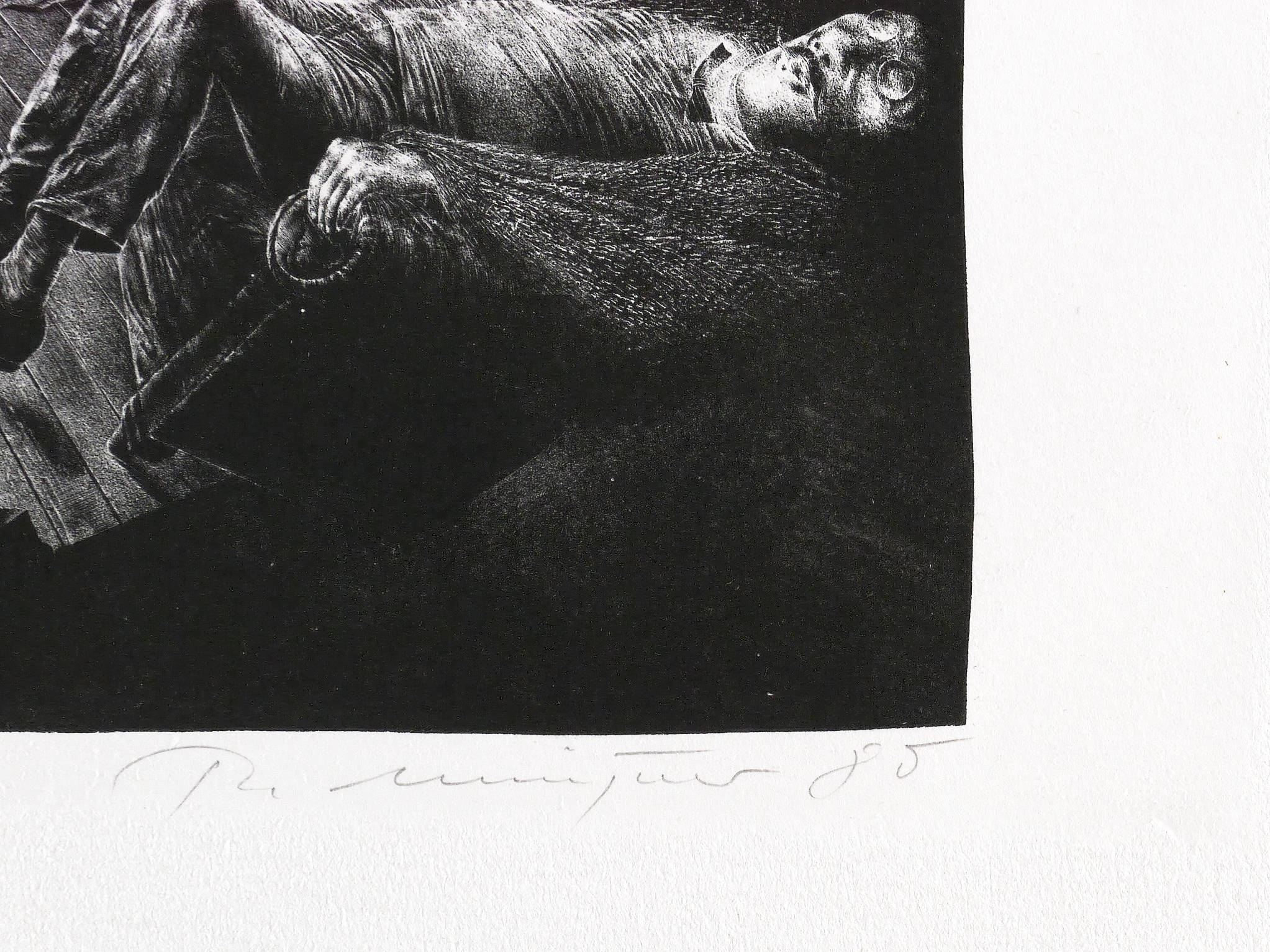 1978/1985. Lithografie / Schablithografie, in Schwarz, auf hellchamois Hahnemühle. – Originale Künstlergrafik, von Rolf Münzner. – Auflage Exemplar Nr. 11/40. – 27,3 x 33,4 cm (Darstellung), 40 x 54 cm (Blatt).