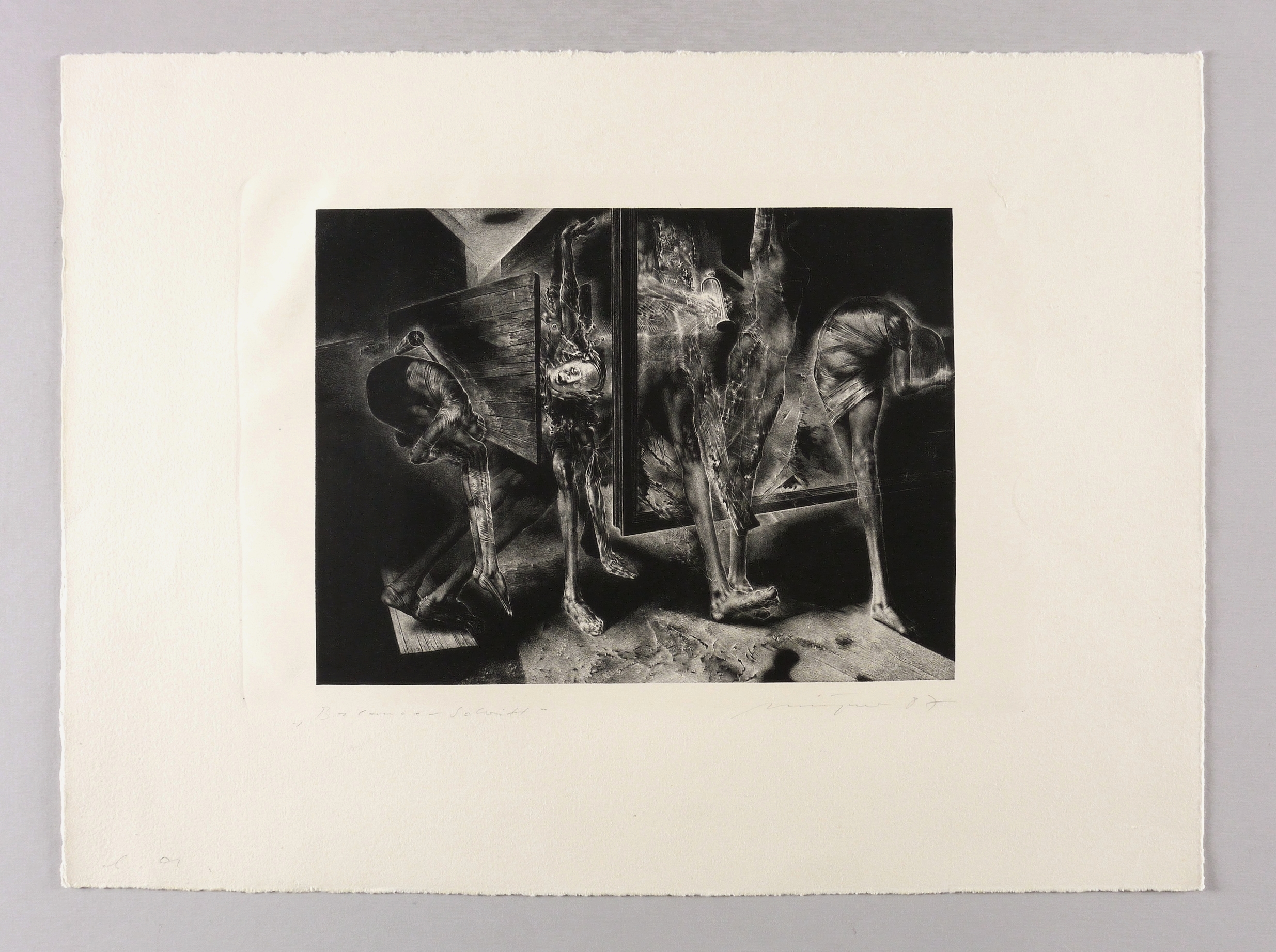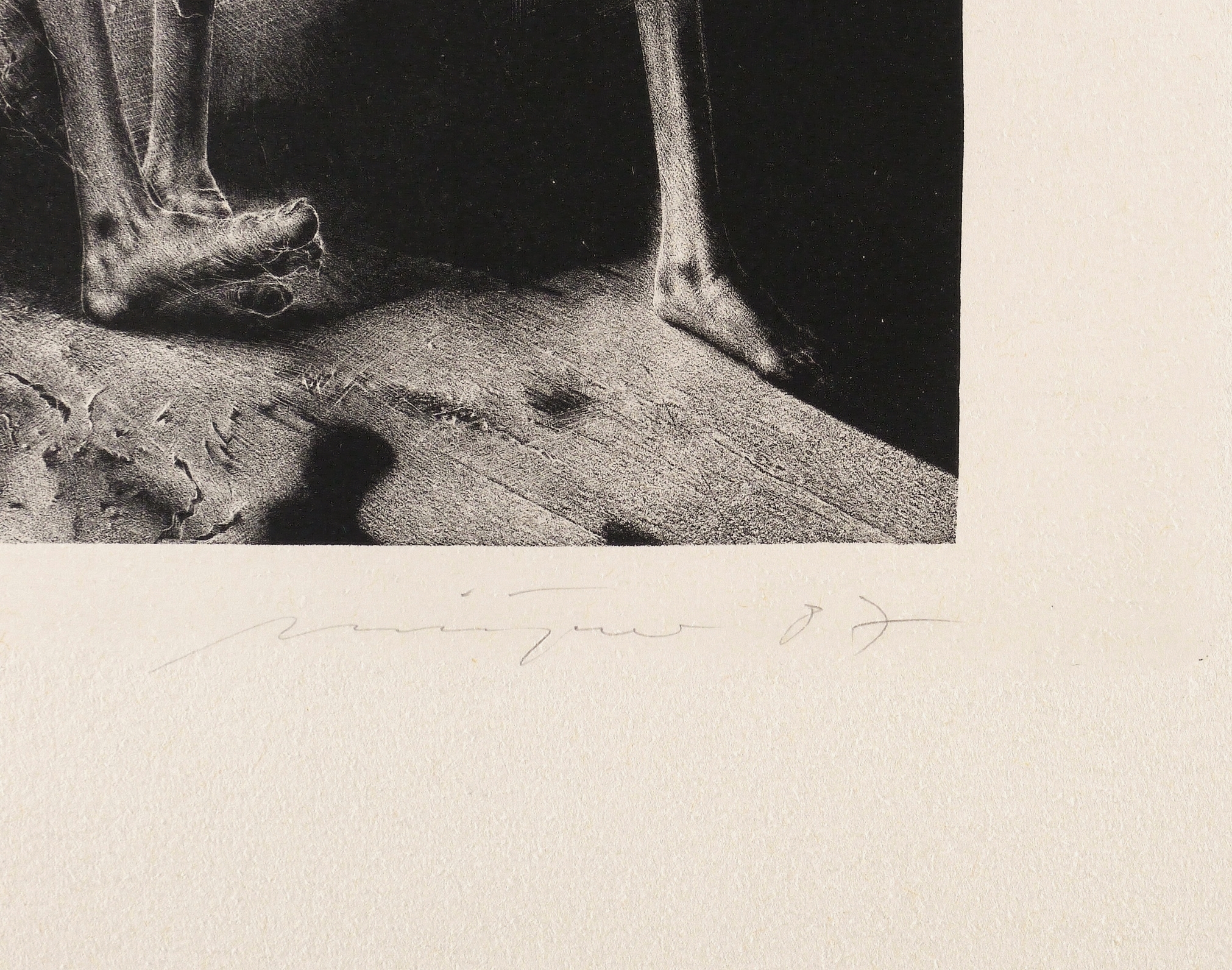 1987. Lithografie / Schablithografie, in Schwarz, auf chamois Bütten. – Originale Künstlergrafik, von Rolf Münzner. – Künstlerexemplar (e.a.). – 22,4 x 30,0 cm (Darstellung / Druckbild), 25,5 x 36,5 cm (Stein), 40 x 54 cm (Blatt).