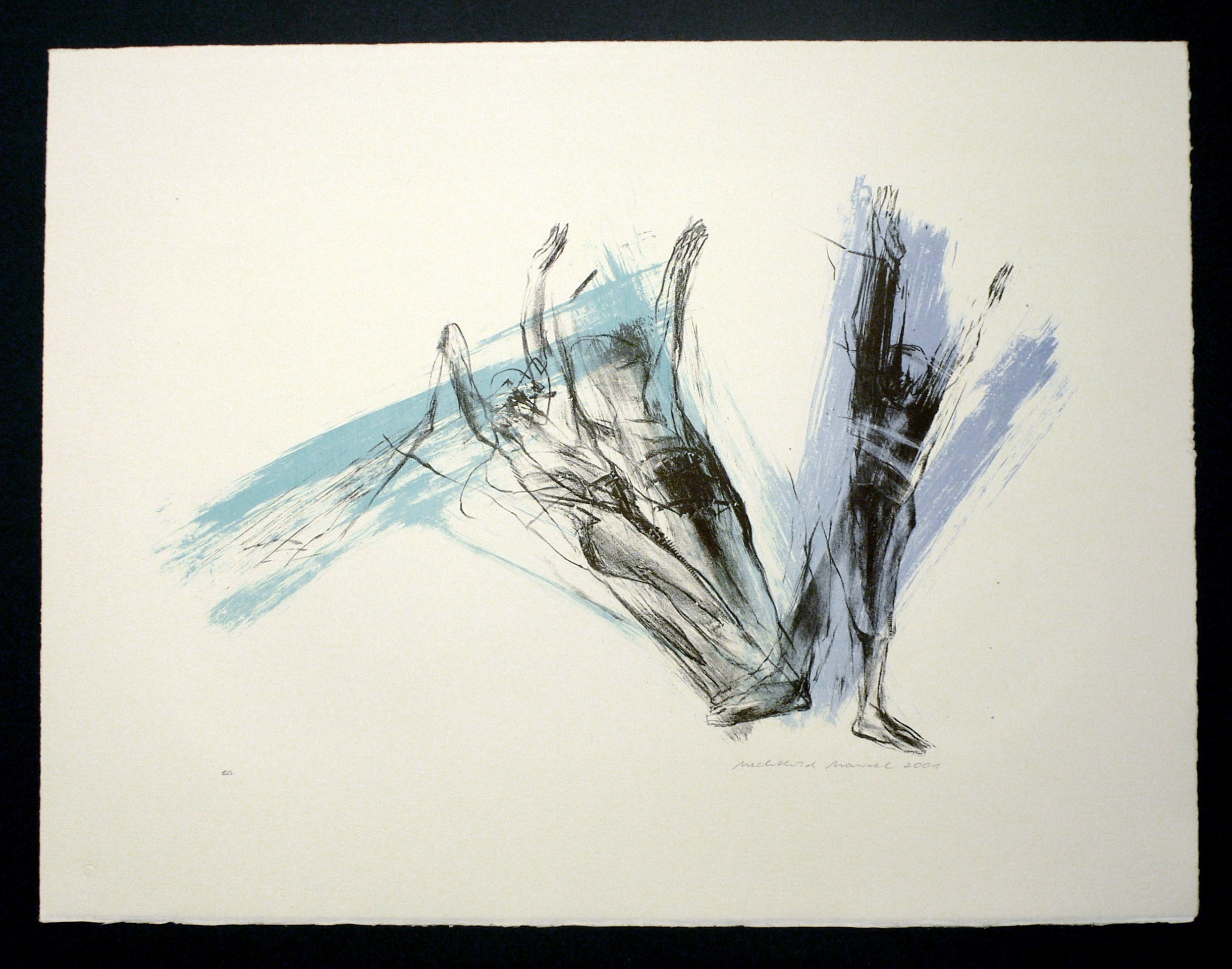 2001. Farblithografie / Kreidelithografie, in drei Farben, auf Hahnemühle-Bütten. – Originale Künstlergrafik, von Mechthild Mansel. – Künstlerexemplar (e.a.). – 35,0 x 57,0 cm (Darstellung / Platte), 53,5 x 70,5 cm (Blatt).