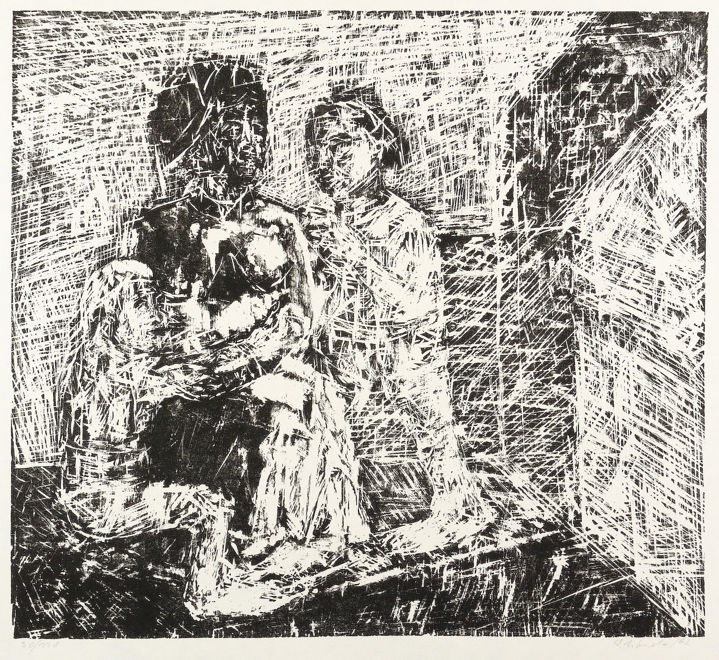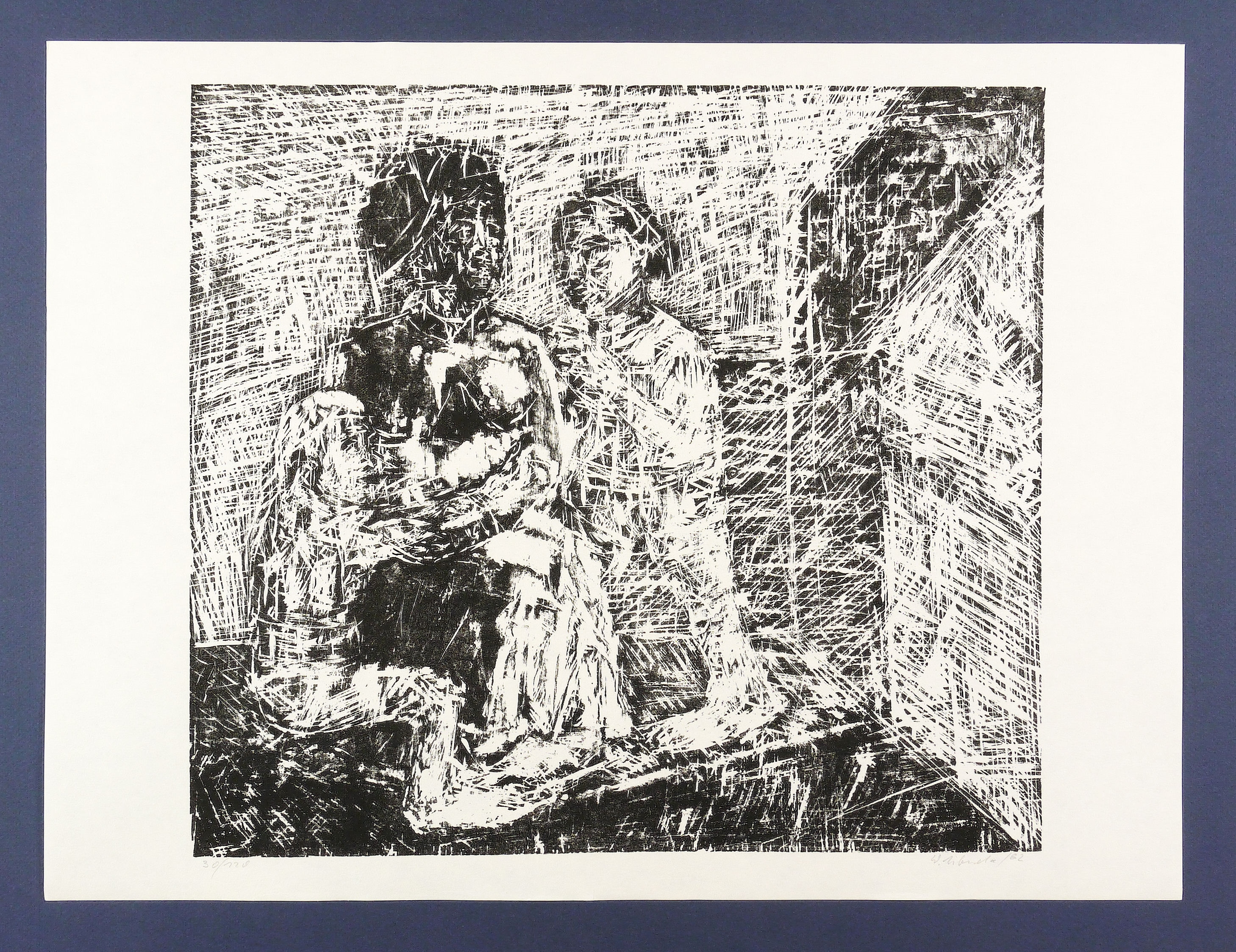 1982. Holzschnitt, in Schwarz, auf leichtem hellchamois Velin. – Originale Künstlergrafik, von Walter Libuda. – Auflage Exemplar Nr. 30/100. – 35,9 x 39,7 cm (Darstellung / Druckbild), 40 x 53 cm (Blatt).