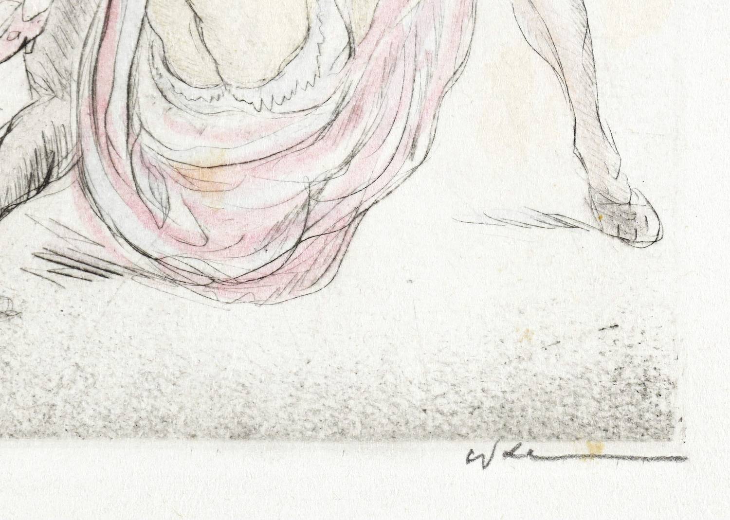 Aus: Walther Klemm, 12 Radierungen zu Giovanni di Boccaccio's Dekameron (München: Kern 1922). – Rechts unten in Bleistift signiert: ″WKlemm″. Links Auflagenbezeichnung. – Diverse unscheinbare Fleckchen. Insgesamt gut erhalten.