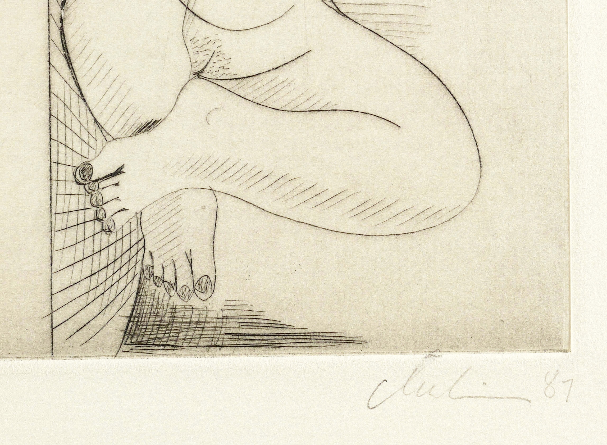 1981. Radierung / Kaltnadel, mit Plattenton, in Schwarz, auf Büttenkarton. – Originale Künstlergrafik, von Peter Makolies. – 31,0 x 24,6 cm (Darstellung / Platte), 46 x 33 cm (Blatt).