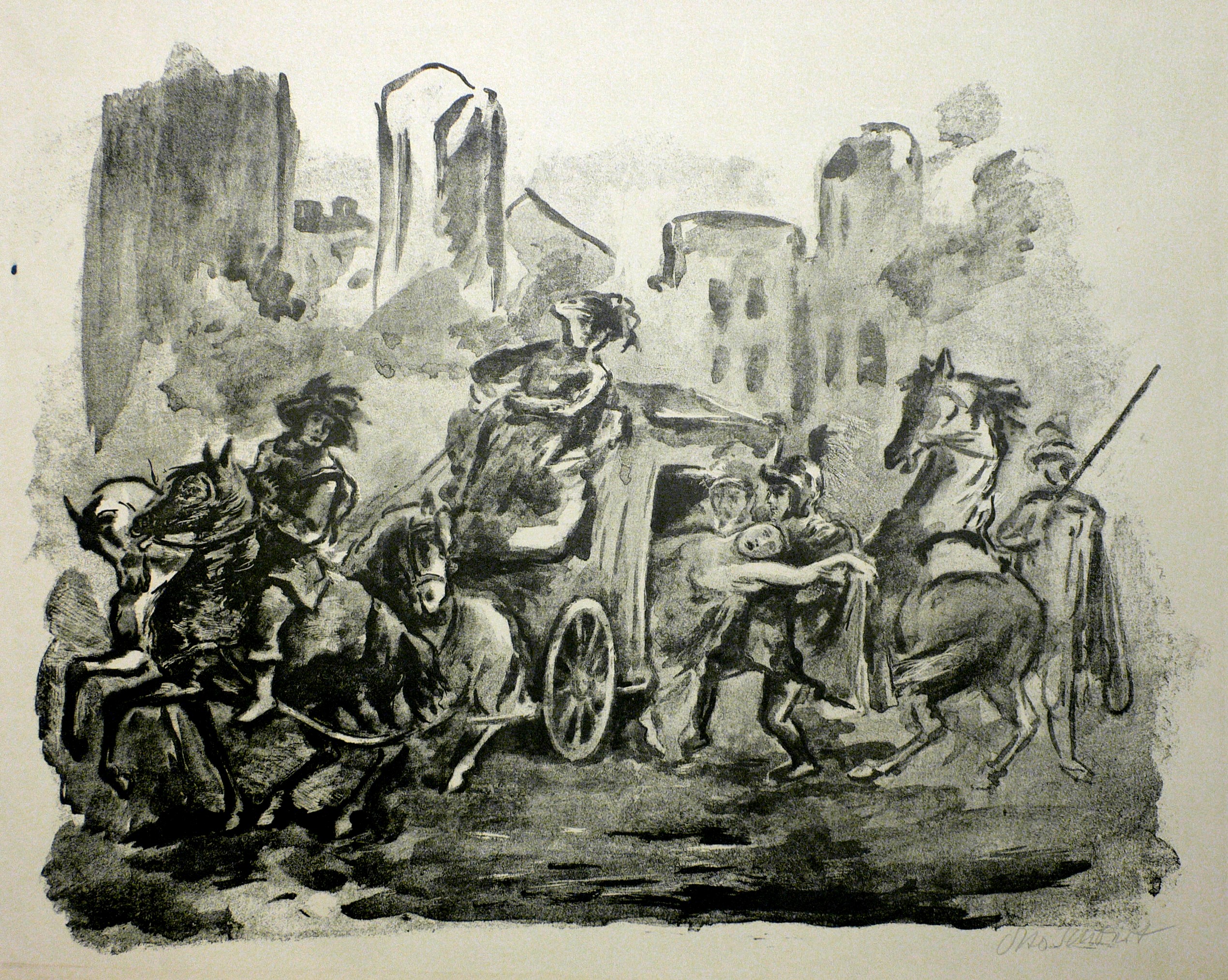 Um 1930. Lithografie / Pinsellithografie, in Schwarz, auf Holland-Bütten. – Originale Künstlergrafik, von Otto Schubert. – 36,5 x 48,5 cm (Darstellung), 49 x 61 cm (Blatt).