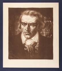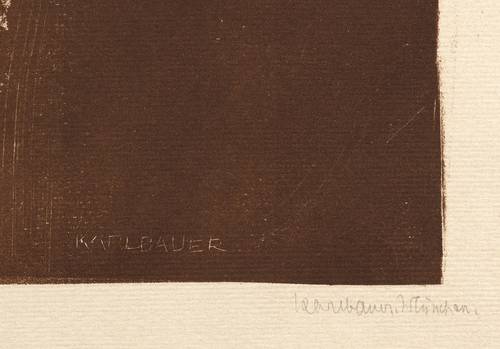 1900-1910. Lithografie / Kreidelithografie, partiell geschabt, in Rotbraun, auf Kupferdruckbütten. – Originale Künstlergrafik, von Karl Bauer. – 44,0 x 37,8 cm (Darstellung / Druckbild), 55,5 x 47,5 cm (Blatt).