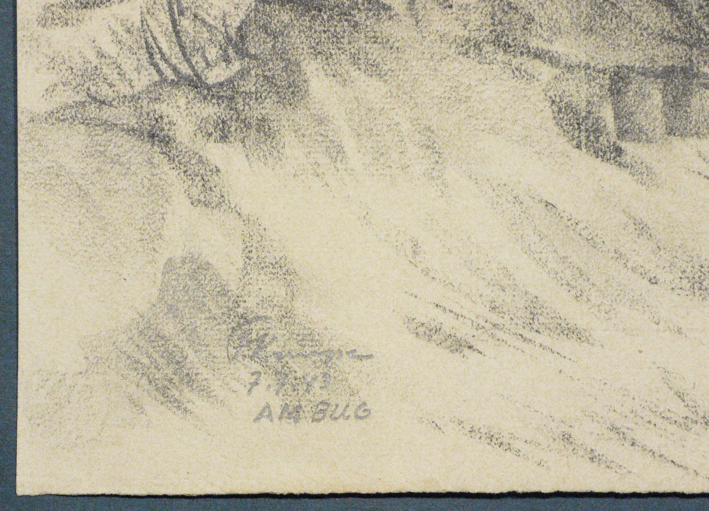 1943. Zeichnung / Kreide & Graphit, auf ockerfarbenem Hahnemühle. – Originale Künstlergrafik, von Fritz Kempe. – Unikat. – 44,3 x 53,2 cm (Darstellung / Blatt).