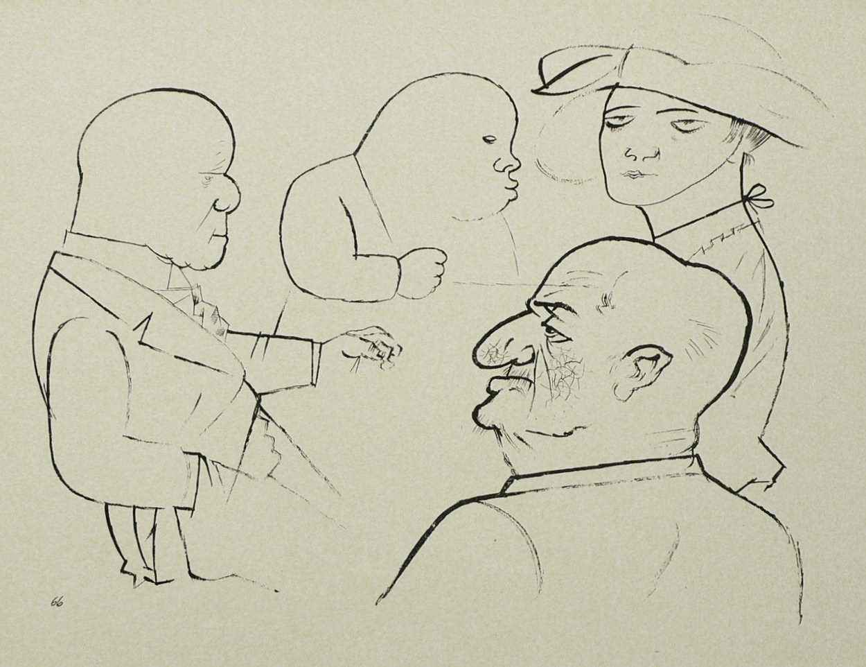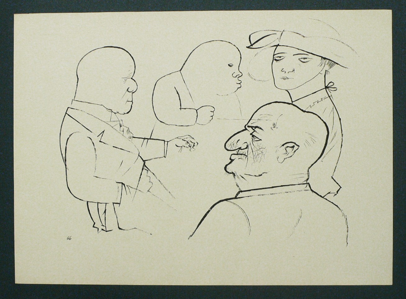 Aus: George Grosz, Ecce homo (Berlin: Malik-Verlag 1923), Bd. Ausgabe C. – Nicht handsigniert. Unten links im Stein nummeriert 66. – Papier altersbedingt leicht verbräunt. Sonst guter Zustand.