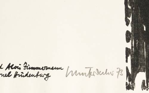 1973. Lithografie / Offsetlithografie, in Schwarz, auf hellchamois Karton. – Originale Künstlergrafik, von Jürgen Schieferdecker. – Auflage Exemplar Nr. 31/100. – 46,9 x 36,3 cm (Darstellung / Druckbild), 50 x 41 cm (Blatt).