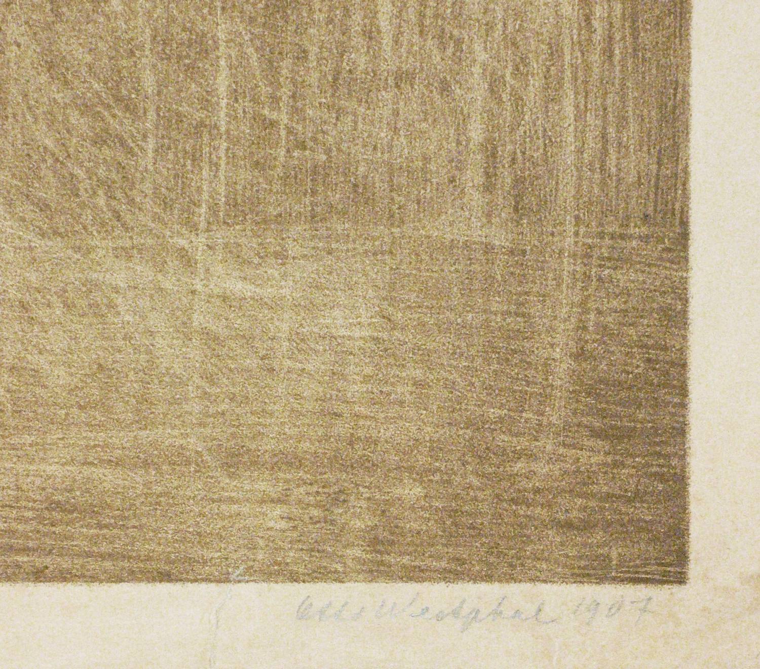 1907. Lithografie / Schablithografie, in Braun, auf gelbem Kupferdruckkarton. – Originale Künstlergrafik, von Otto Westphal. – 47,3 x 28,4 cm (Darstellung), 52 x 32 cm (Blatt).
