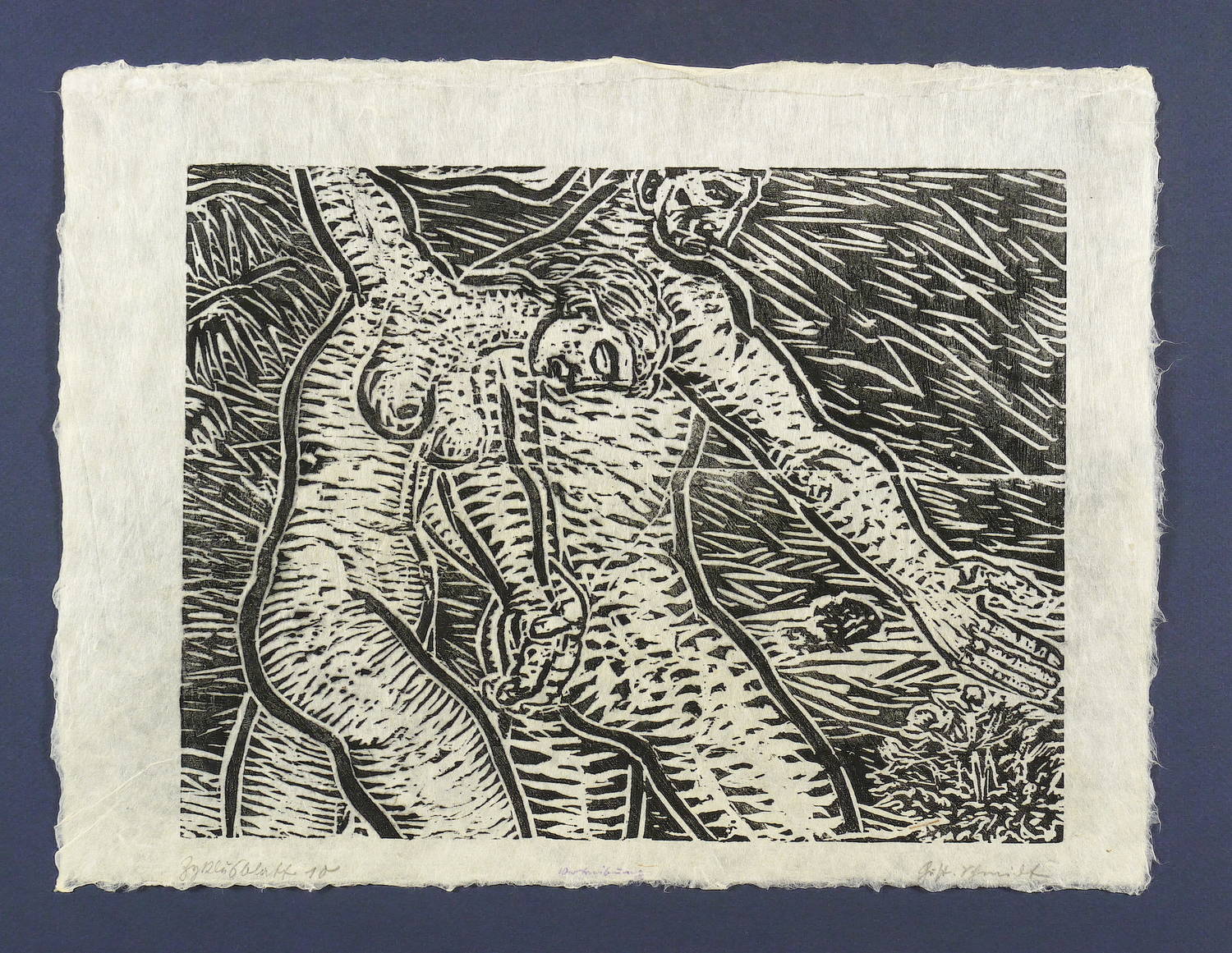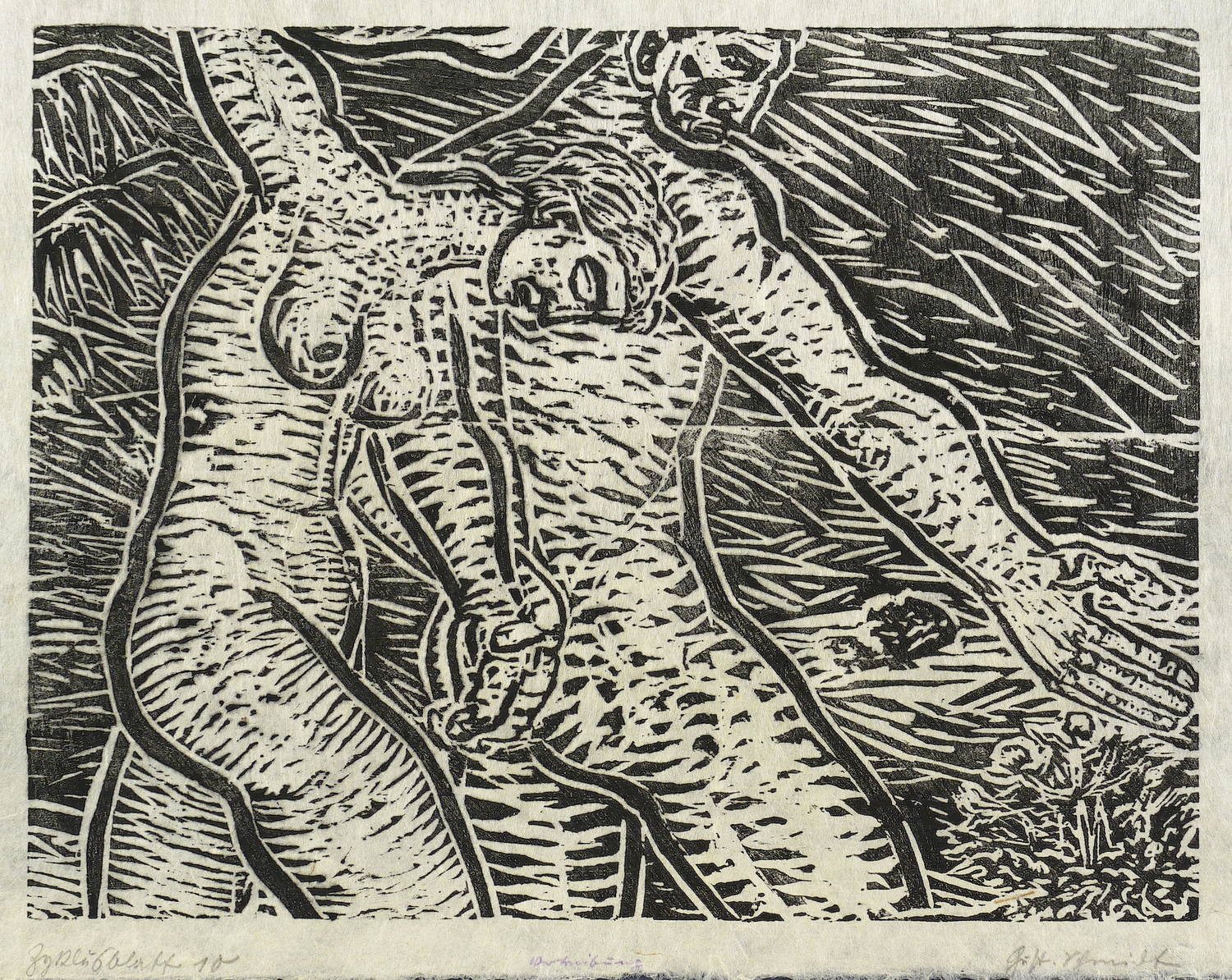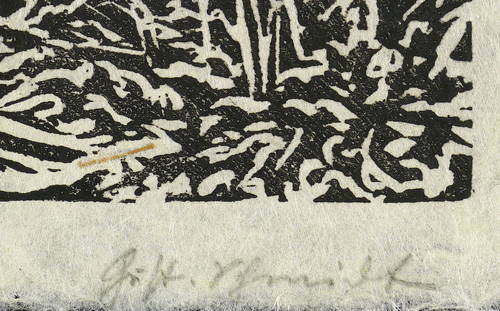 1927. Holzschnitt, in Schwarz, auf fasrigem Japanbütten. – Originale Künstlergrafik, von Gustav Schmidt. – 24,5 x 32,0 cm (Darstellung / Druckstock), 30 x 40 cm (Blatt).