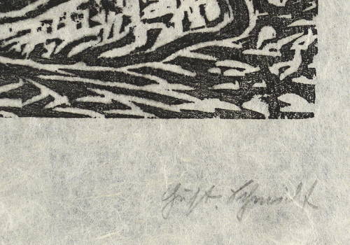 1927. Holzschnitt, in Schwarz, auf Japanbütten. – Originale Künstlergrafik, von Gustav Schmidt. – 32,1 x 24,3 cm (Darstellung / Druckstock), 39 x 30 cm (Blatt).