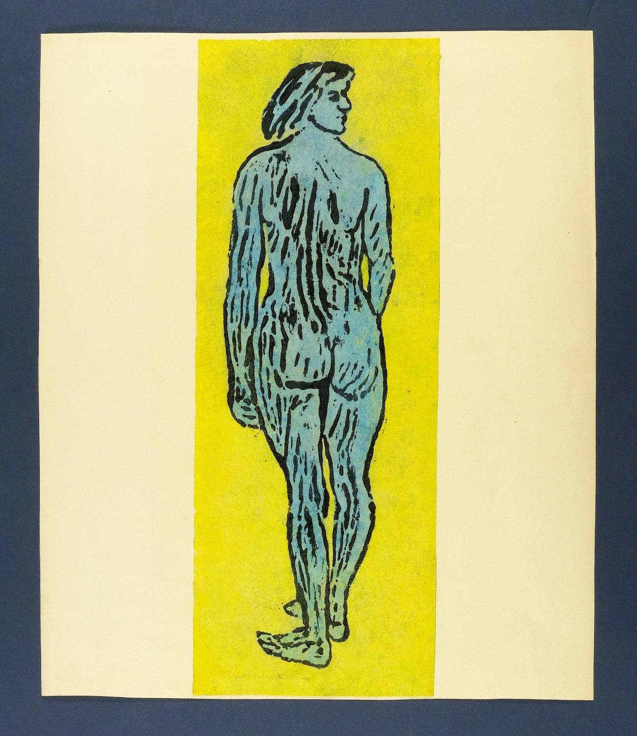 Trägerpapier verso in Bleistift signiert, betitelt und datiert. Dazu bezeichnet: ″Gipsstock - Farbhanddruck″. – Seltenes Hochdruckverfahren, bei dem die Druckform in Gips hergestellt, die Darstellung negativ geschabt und der Druck im Handreibeverfahren abgezogen wird. – Original auf Trägerpapier montiert. Verso Reste einer ehemaligen Montierung. Trägerpapier etwas gegilbt und mit leichten Randmängeln. Insgesamt gut erhalten.