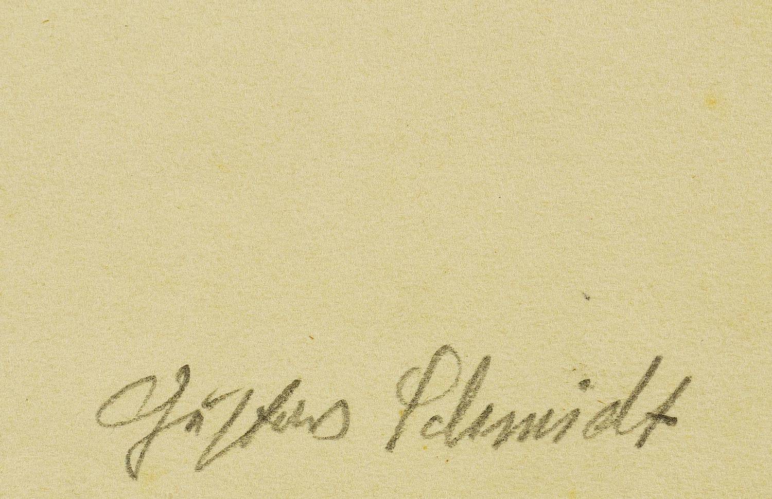Gustav Schmidt (1888 Peine - 1972 Dresden). Deutscher Maler, Grafiker, Bildhauer und Keramiker. Namhafter Vertreter des expressiven und kritischen Realismus. Studium an der Akademie in Dresden bei Robert Sterl und Carl Bantzer. 1911-13 Meisterschüler bei Otto Gußmann. Als Soldat im Ersten Weltkrieg schwer verwundet kehrte er 1917 als Zeichenlehrer ans Realgymnasium Peine zurück. Seit 1919 als freischaffender Künstler in Dresden. Widmete sich vor allem antiken und biblischen Bildthemen. Sein Werk umfasst Gemälde, Zeichungen sowie druckgrafische Blätter in Holzschnitt und Gipshochdruck, so z.B. die Grafikfolgen "Passion Christi" und "Die ersten Menschen".