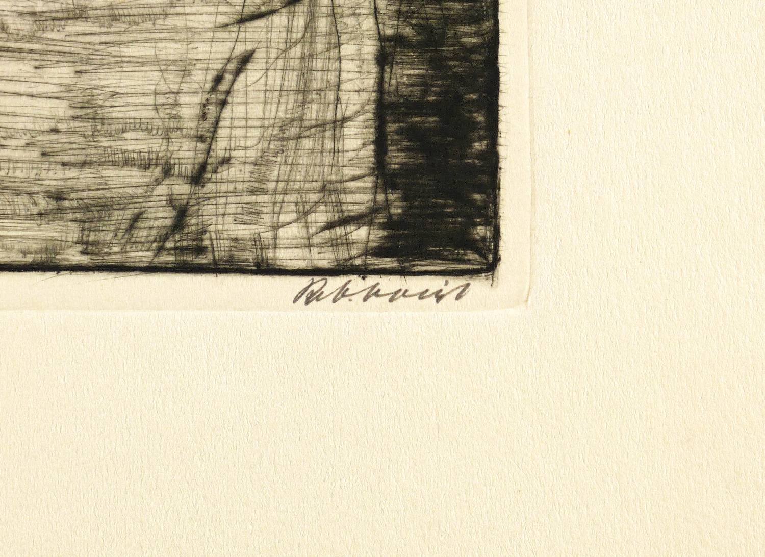 Um 1925. Radierung / Kaltnadel, in Schwarz, auf gelbem Kupferdruckpapier. – Originale Künstlergrafik, von Richard Otto Voigt. – 18,9 x 15,5 cm (Darstellung / Einfassungslinie), 19,8 x 16,4 cm (Platte), 40 x 30 cm (Blatt).