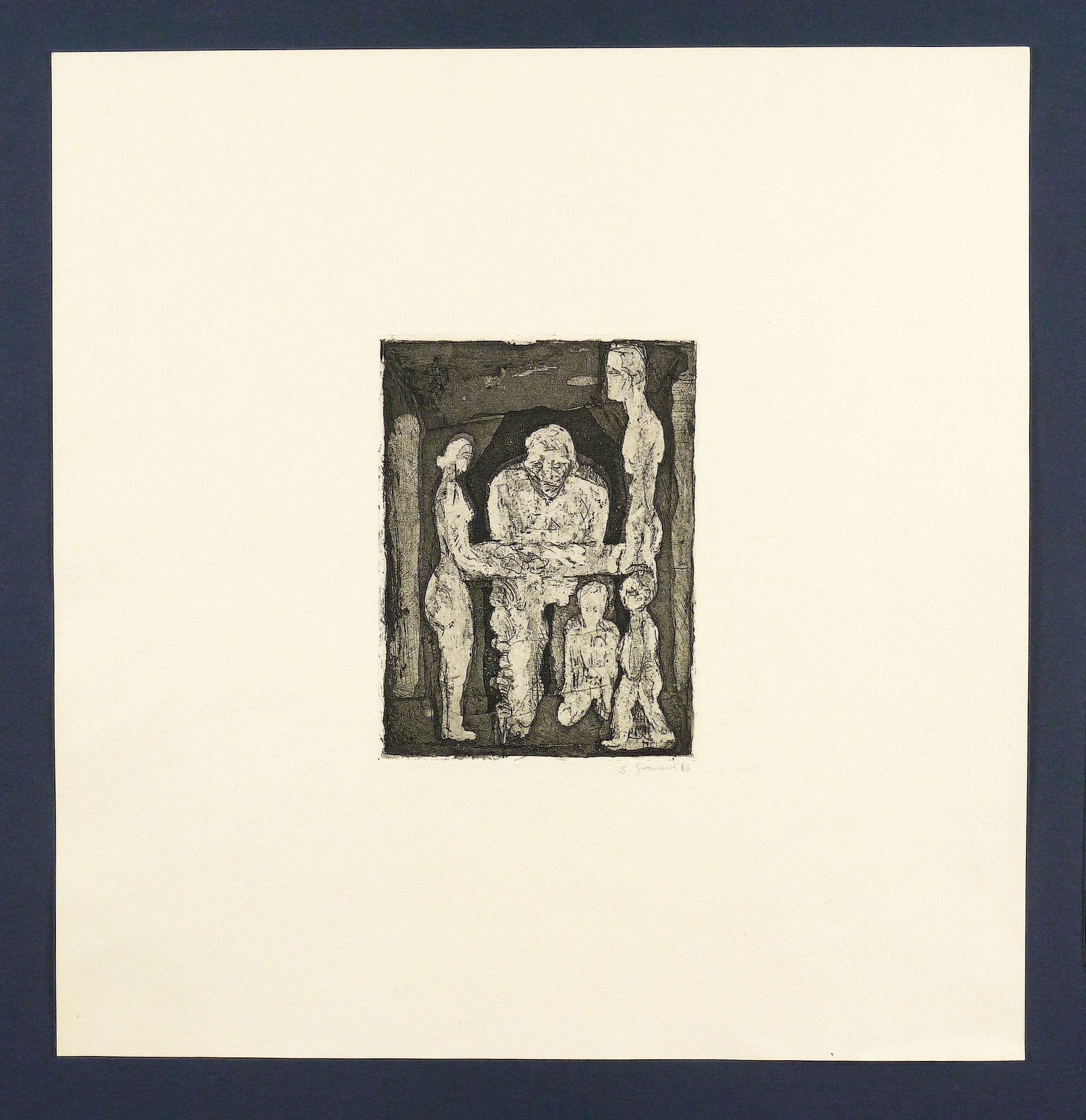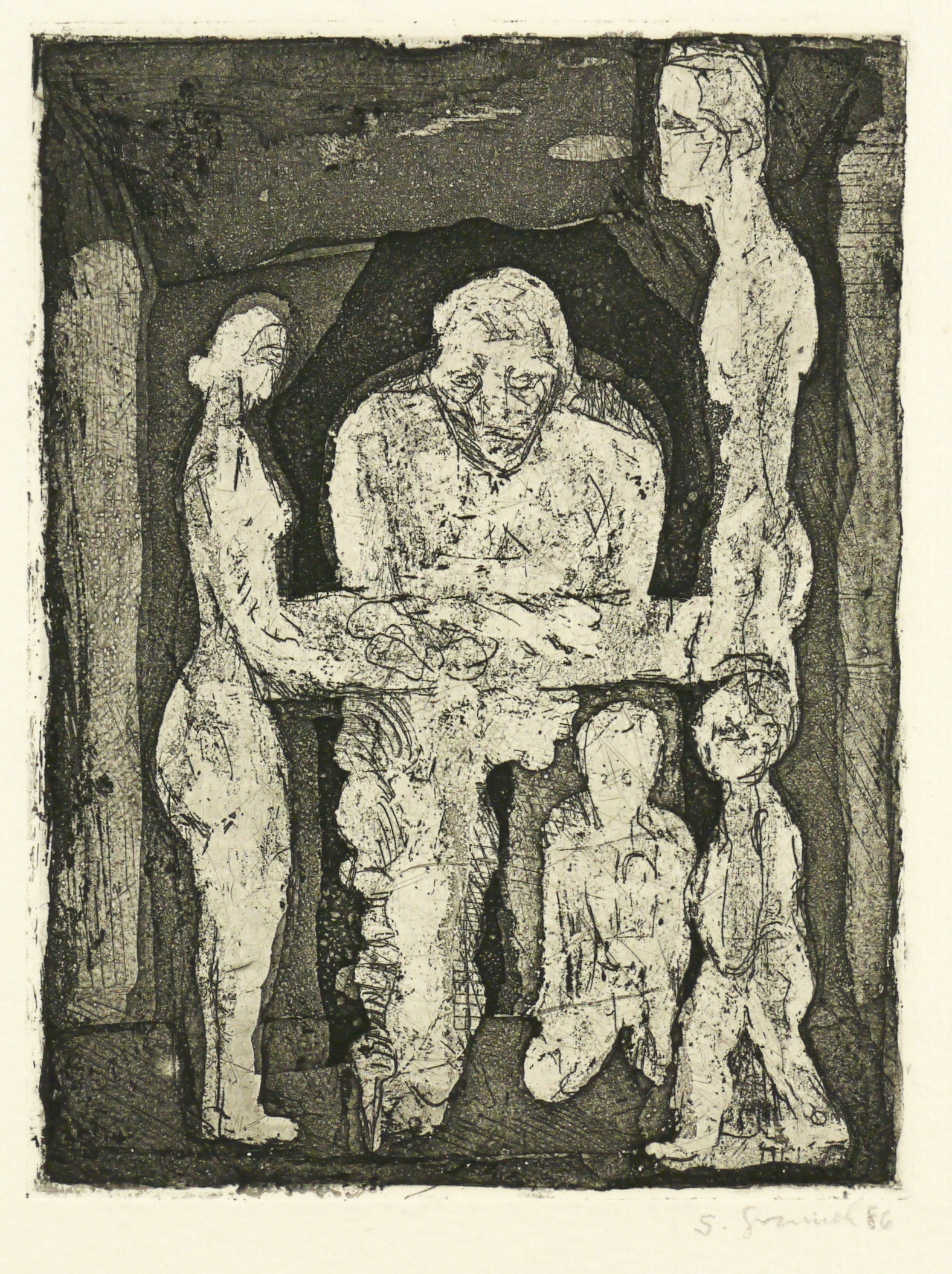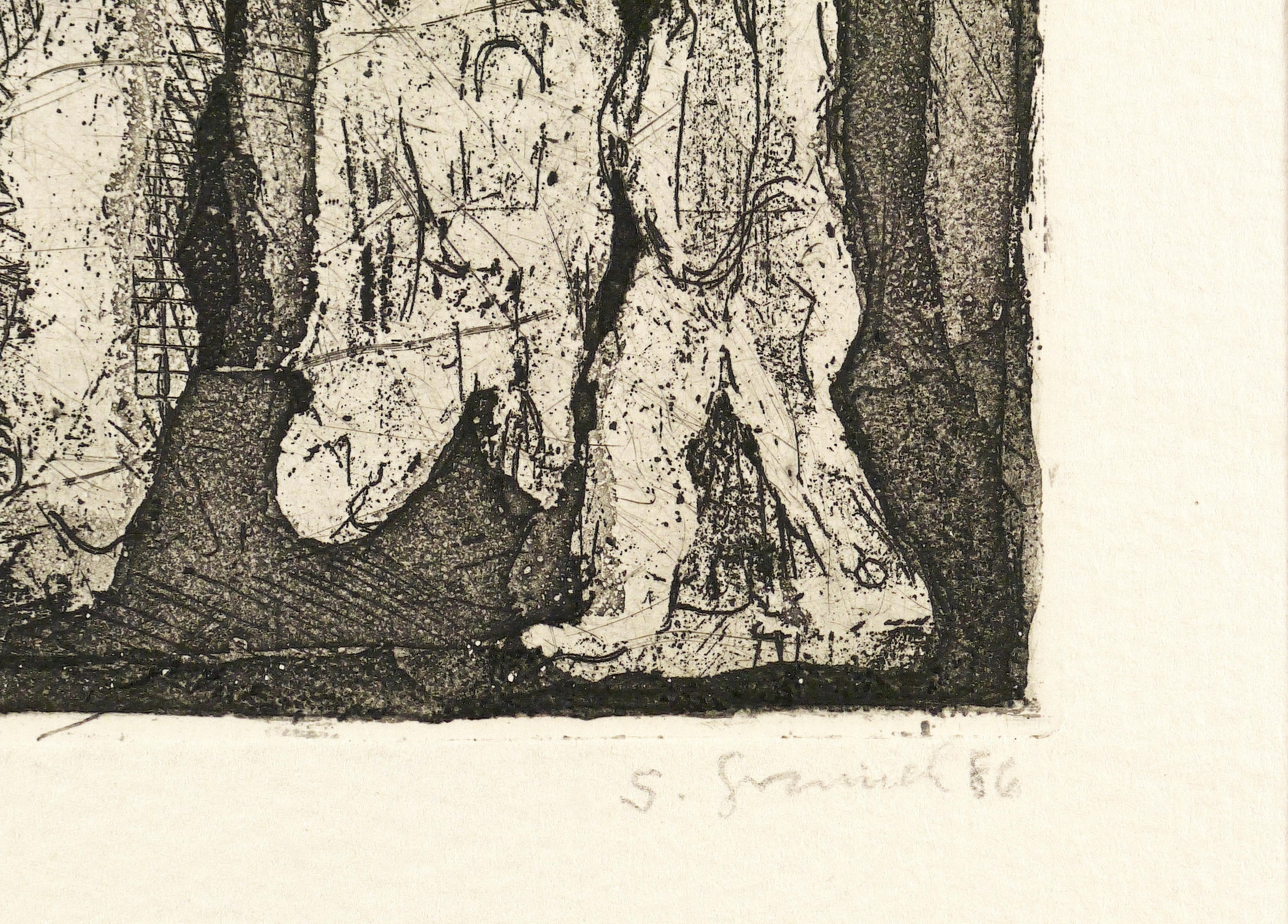 1986. Radierung / Aquatinta & Strichätzung, in Schwarz, auf Velin. – Originale Künstlergrafik, von Sabina Grzimek. – 15,7 x 11,8 cm (Darstellung / Platte), 38 x 36,5 cm (Blatt).