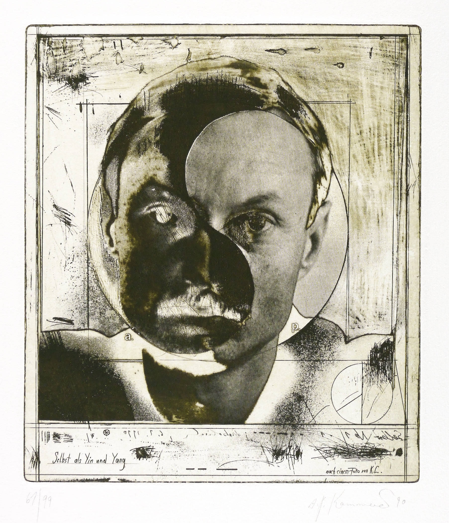 Rechts unten in Bleistift signiert und datiert: ″A.P. Kammerer 90″. Links Auflagenbezeichnung. In der Platte links unten Inschrift: ″Selbst als Yin und Yang″. Rechts weiter: ″nach einem Foto von K.L.″ – Unscheinbare Griffspur im Blattrand link unten. Guter Zustand.