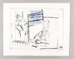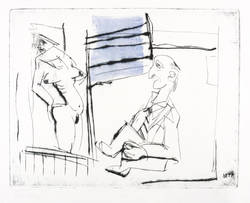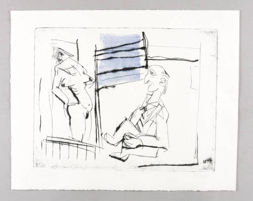 1986. Farbradierung / Kaltnadel & Roulette, in Blau & Schwarz, auf festem hellchamois Hahnemühle. – Originale Künstlergrafik, von Wolfgang KE Lehmann. – 39 x 49 cm (Blatt), 30,9 x 39,5 cm (Darstellung / Platte).