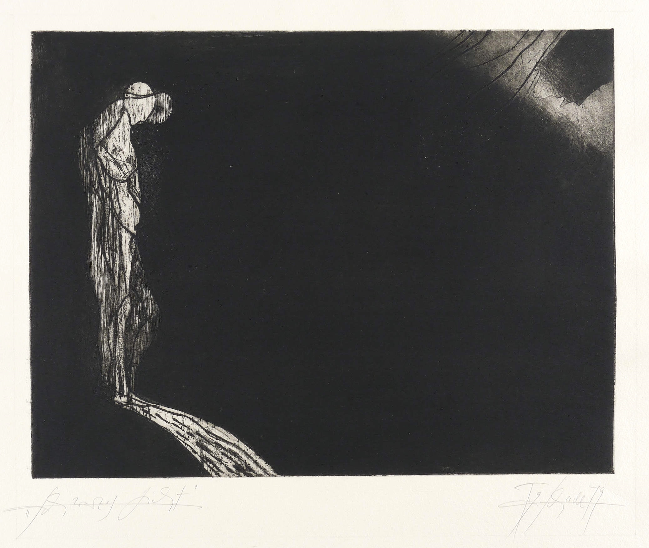 In Bleistift rechts unten signiert und datiert: ″G.T. Schade 79″. Links Titel: ″Schwarzes Licht″. Unten Auflagenbezeichnung: ″1-60″. – Tadellos. Sehr guter Zustand.