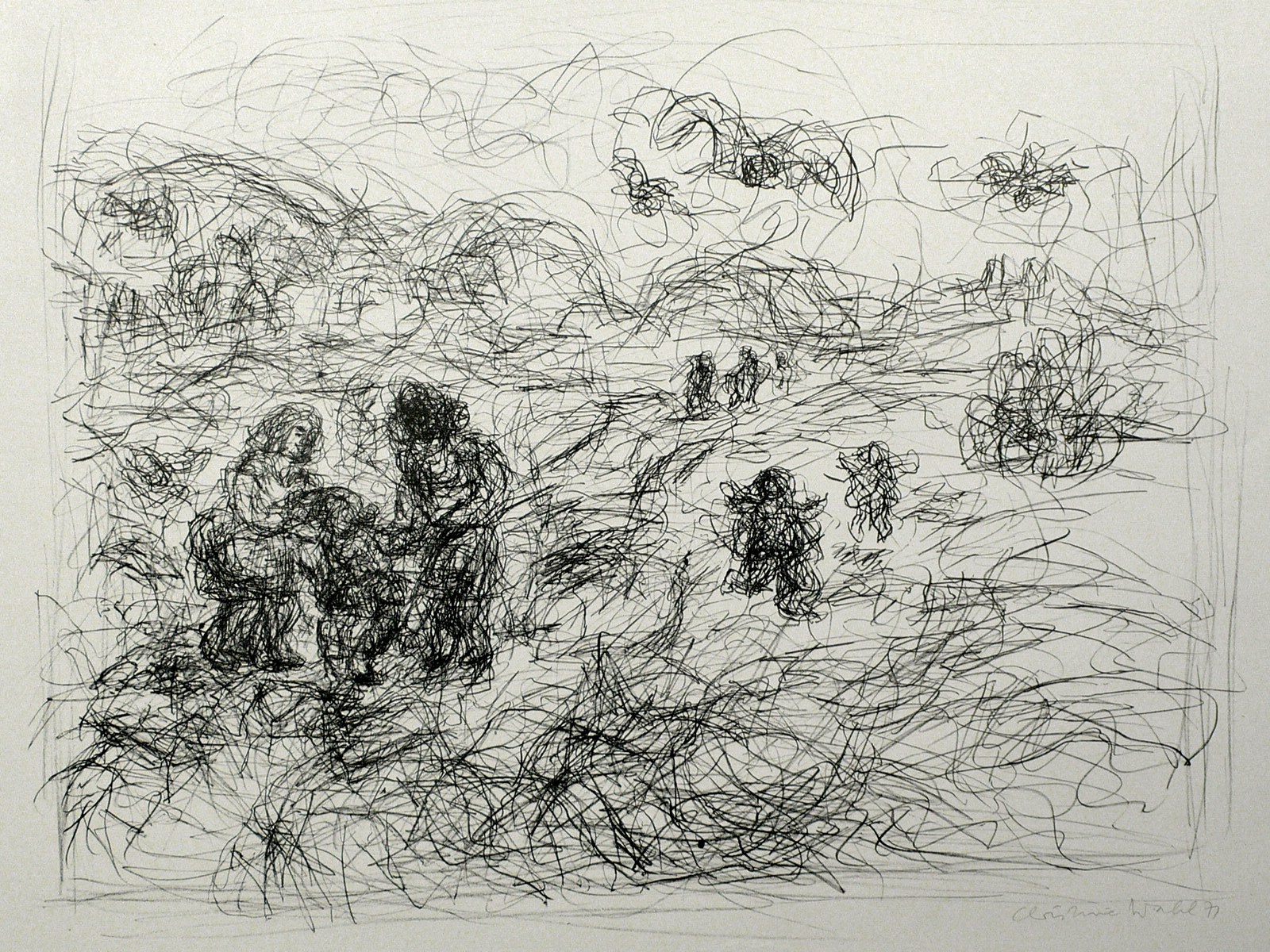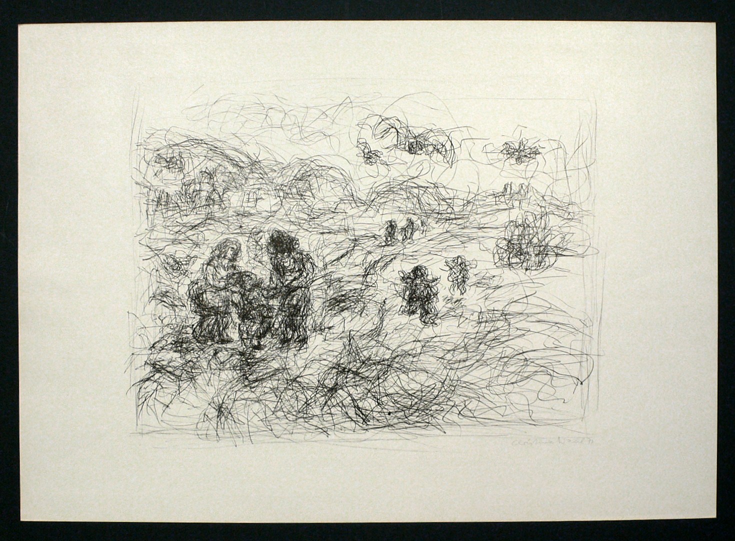 1971. Lithografie / Kreidelithografie, in Schwarz, auf hellchamois Velin. – Originale Künstlergrafik, von Christine Wahl. – Auflage 70 Exemplare. – 31,2 x 39,2 cm (Darstellung / Druckbild), 42 x 60 cm (Blatt).