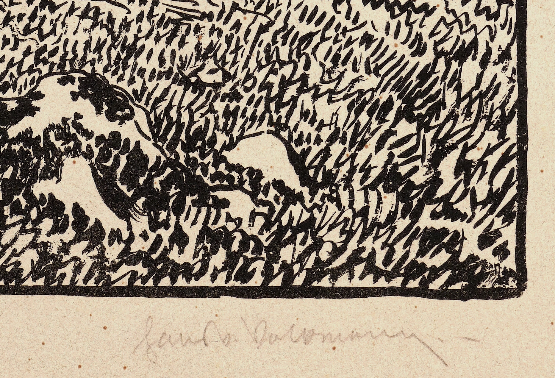 1921. Lithografie / Pinsellithografie, in Schwarz, auf hellgrauem Karton. – Originale Künstlergrafik, von Hans Richard von Volkmann. – 37,4 x 49,2 cm (Darstellung / Einfassungslinie), 46 x 58 cm (Blatt).