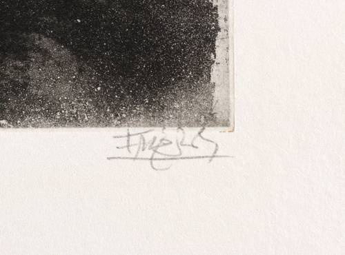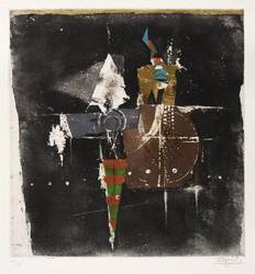 1974. Farbradierung / Aquatinta, in 5 Farben, auf schwerem hellchamois Velin. – Originale Künstlergrafik, von Johnny Friedländer. – Auflage Exemplar Nr. 49/135. – 29,6 x 28,0 cm (Darstellung / Platte), 43 x 38 cm (Blatt).