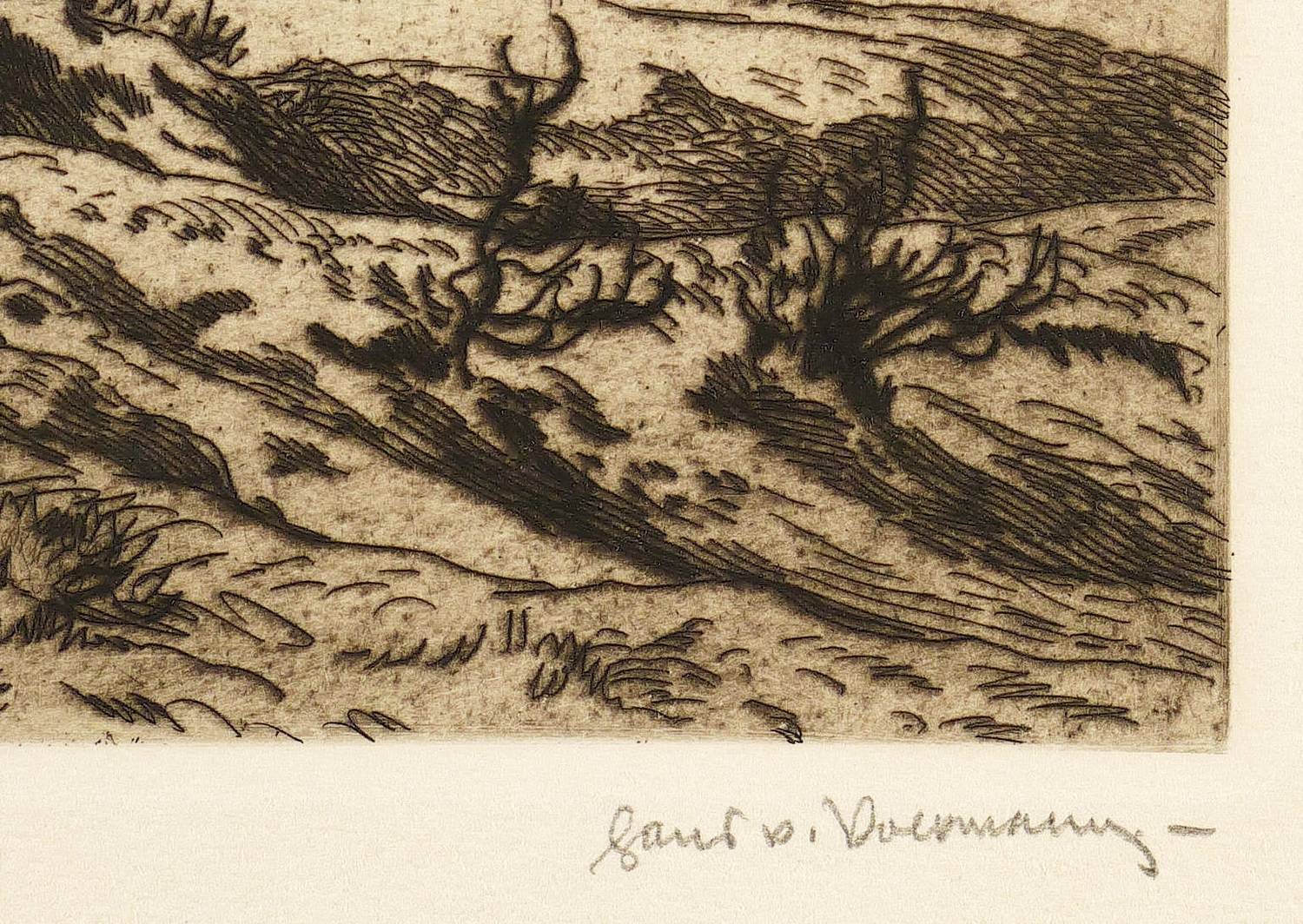 1916. Radierung / Strichätzung & Kaltnadel, mit Plattenton, in Schwarz, auf gelblichem Kupferdruckkarton. – Originale Künstlergrafik, von Hans Richard von Volkmann. – 13,5 x 21,0 cm (Darstellung / Platte), 30 x 36 cm (Blatt).